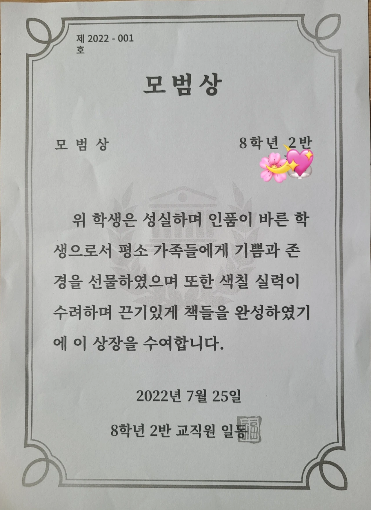 손녀가 자기 전에 적어놓은 장식의 의미...