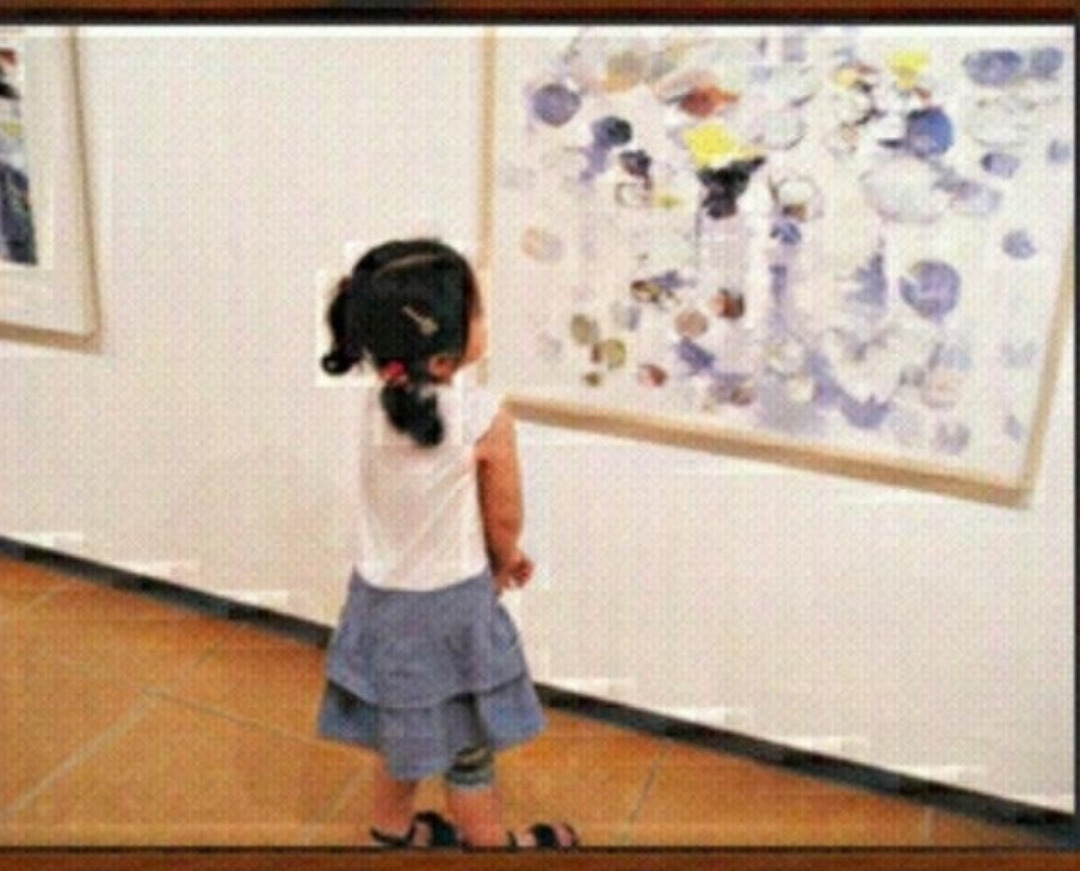 기름으로 그린 풀밭 위를 꼬마가 걷는다