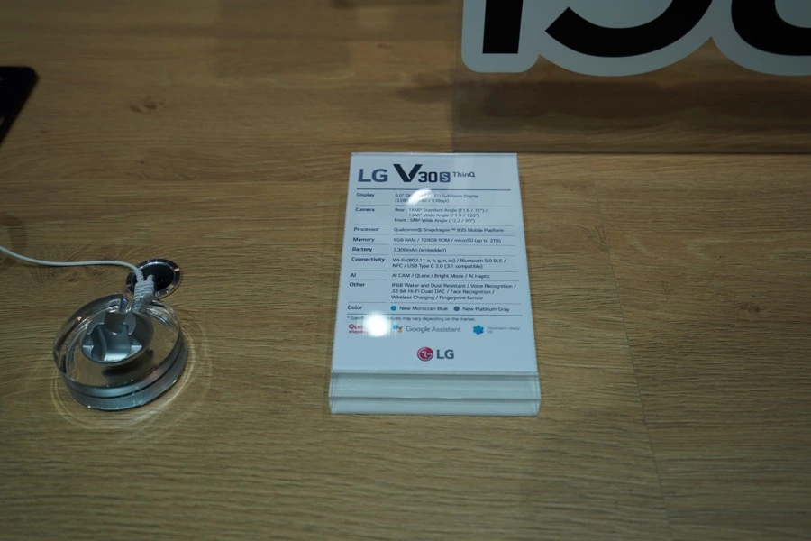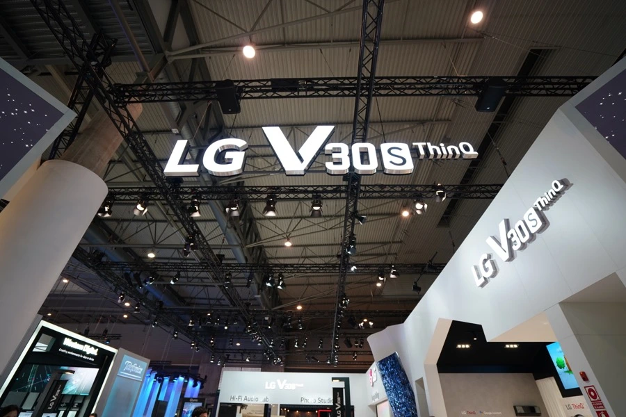 보시는 것처럼 LG전자 MWC 전시관은 LG V30S ThinQ 모델을 중심으로 전시가 되어 있는 것을 볼 수 있었습니다. 먼저 이 제품명 뒤에 붙은 ThinQ (씽큐)가 궁금하신 분들도 있으실 것 같은데요. 'LG ThinQ' 브랜드는 작년 말 공개한 LG전자 인공지능 브랜드입니다. 당시 LG전자는 앞으로 출시하는 LG전자 제품 중 인공지능이 반영된 제품에는 ThinQ 브랜드가 적용할 예정이라고 밝혔는데요. LG V30S ThinQ 제품은 모바일 제품 중에 가장 처음으로 적용되는 제품입니다.