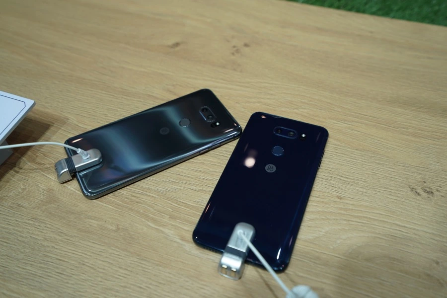 LG V30S ThinQ 모델입니다. 이 모델의 외관은 보시는 것처럼 LG V30 모델을 기본 플랫폼으로 하고 있기 때문에 동일합니다. 이 모델에는 공감형 AI 기술이 접목되어 있는데요. 공감형 AI는 스마트폰 사용자가 가장 많이 사용하는 기능을 분석해 누구나 편리하게 쓰고 싶어 하는 기능들을 중심으로 AI 기술을 접목한 기술입니다.