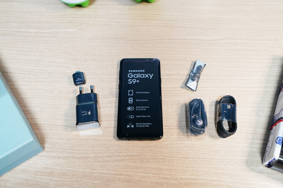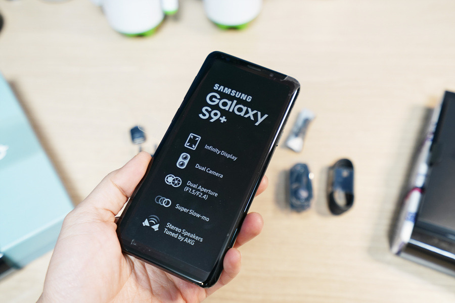갤럭시S9 플러스 모델은 6.2인치 QHD+ 슈퍼 아몰레드 인피니티 디스플레이 (S9 5.8인치), 듀얼 픽셀 1200만 화소 F1.5 / 2.4 듀얼 조리개 카메라(슈퍼 슬로우 모션 기능), 800만 화소 전면 카메라, AKG 튜닝 스테레오 스피커, IP68 방수방진, 홍채인식, 256GB 저장공간 (플러스 모델의 경우 64/256GB 출시), RAM 6GB (S9 4GB), 무선충전, AKG 튜닝 이어폰의 스펙을 가지고 있습니다.