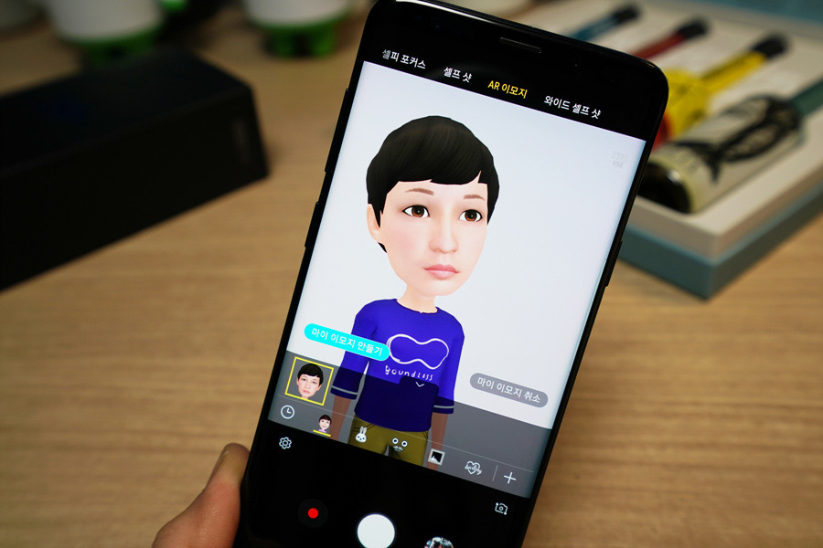 지난 MWC 2018 전시존에서 가장 큰 관심을 받은 것을 바로 AR 이모지 기능입니다. 참관을 하시는 분들이 주로 체험을 해보고 있었던 기능 중에 하나인데요. 본인만의 3D 아바타 이모지를 만들 수 있는 기능으로, 눈, 코, 입, 뺨, 이마 등 100개 이상의 얼굴 특징을 인식하고 분석해서 만들어주며, 셀피로 촬영하면서 이모지가 나타나게 할 수 있고, 스티커를 만들 수 있습니다.