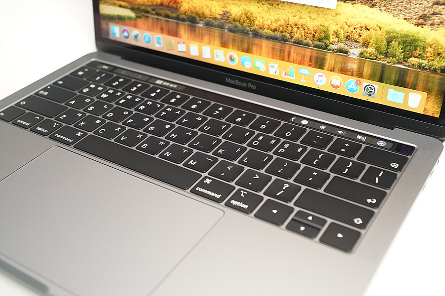 신형 맥북프로 2018 모델의 또 하나의 변화는 바로 3세대 나비식 매커니즘이 적용된 키보드가 탑재되었다는 것입니다. 실제로 전작과 비교를 해보면 좀 더 안적인 느낌을 받을 수 있으며, 소음이 감소한 것을 확인할 수 있었습니다.