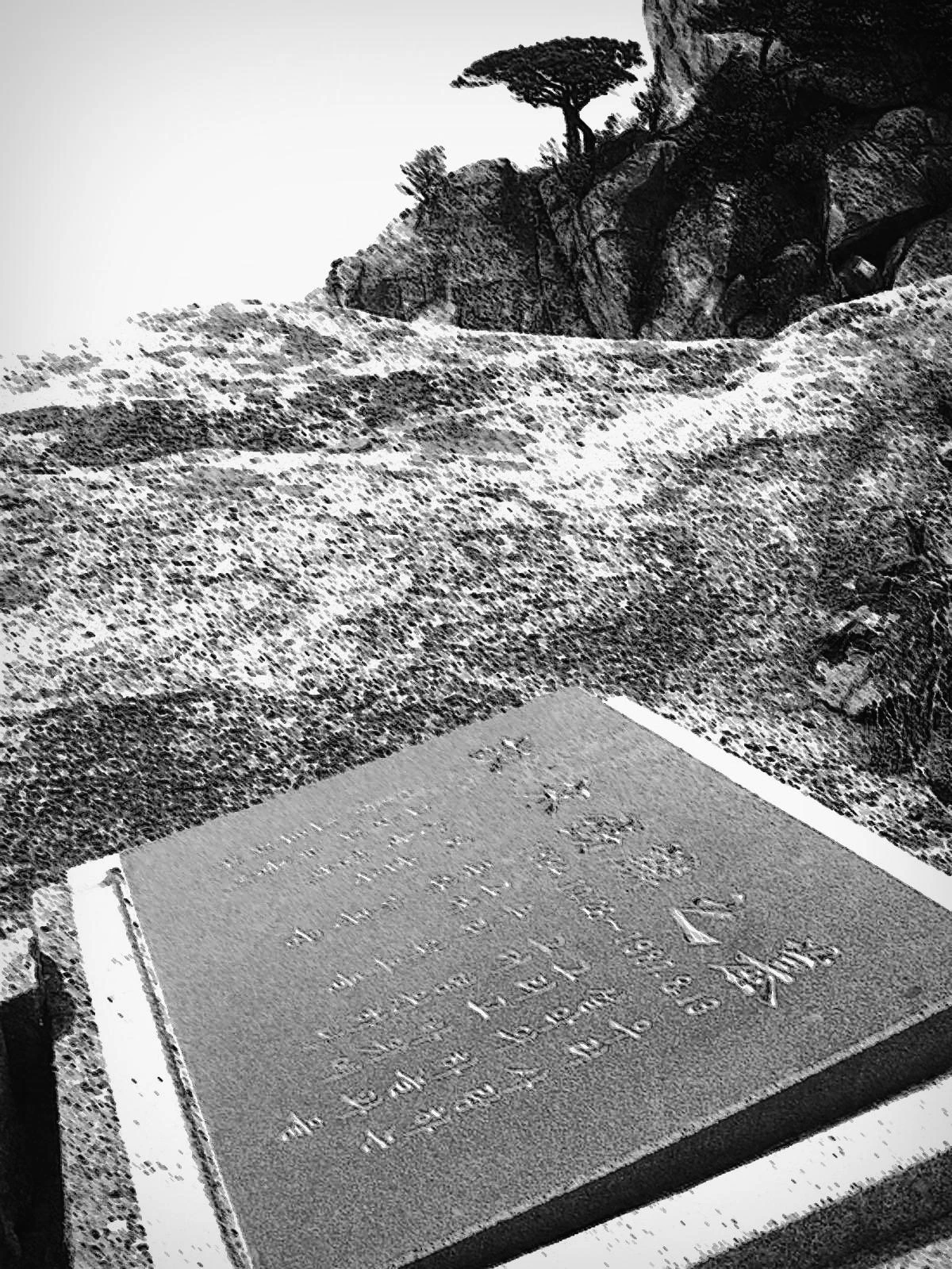 드문드문 놓인 추모석 몇 기와 절벽 위에 걸쳐진 작은 소나무,
