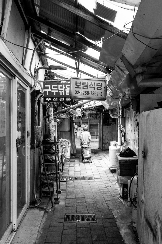 집주변에 쉽게 갈 수 있는 출사지 하나쯤 만들어두는 게 좋다고 생각한다. 목동에 살 땐 안양천이 그랬고, 지금 부암동에선 을지로와 종로의 골목길이 그렇다. 버스 한 번이면 닿는 거리, 마음만 먹으면 언제든 카메라를 들고 나설 수 있다. 그동안 수십 번은 갔을 것이다. 그런데도 늘 새롭다. 같은 길, 같은 벽, 같은 간판인데도 시간대와 빛의 방향 그리고 오가는 사람들의 모습에 따라 전혀 다른 풍경이 된다. 항상 새로운 피사체가 나를 기다리고 있다. 이날도 그랬다. 별 생각 없이, 그냥 걷고 싶어서 나섰던 골목길 산책. 그런데 뜻밖의 순간에 멋진 장면을 만났다. 짜릿한 손맛, 셔터를 누르는 그 찰나의 전율. 그렇게 몇 장의 사진이 하루를 통째로 기분 좋게 만들어줬다. 길거리 사진은 결국 ‘발견’이라는 걸 다시금 느낀 하루였다. 익숙한 곳에서 낯선 아름다움을 발견하는 순간, 그 쾌감에 나는 골목길을 걷는다.