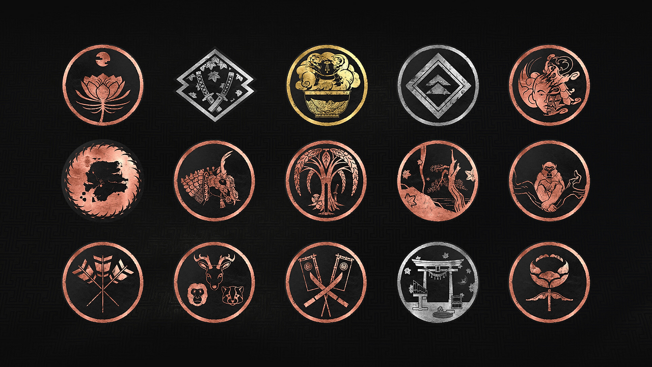이키섬(Iki Island) 확장팩에는 기존 로고 아래에 붉은 붓터치와 함께 'IKI ISLAND'가 추가되었다. 디렉터스 컷(Director's Cut) 로고는 사카이 가문의 문양과 하단의 붓터치가 금색으로 변경됐다.