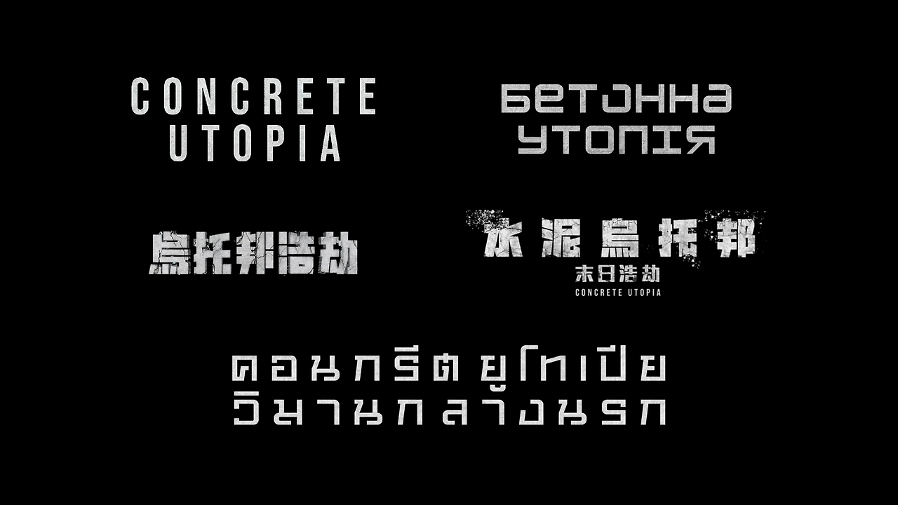 언어가 달라져도 오리지널 로고가 가진 시각적 아이덴티티를 유지한 것들만 찾아서 모아봤다. 영어, 우크라이나어, 태국어 모두 두껍고 묵직한 고딕 계열을 사용해 콘크리트의 물성을 살린다. 특히 한자 로고의 경우 글자의 복잡한 획을 부서진 파편처럼 조금 더 거칠게 덜어내어, 대지진으로 인한 붕괴라는 영화의 모티프를 효과적으로 전달하고 있다.