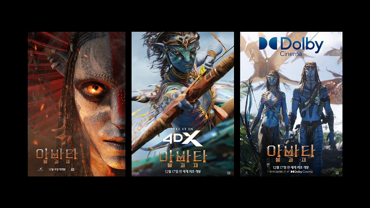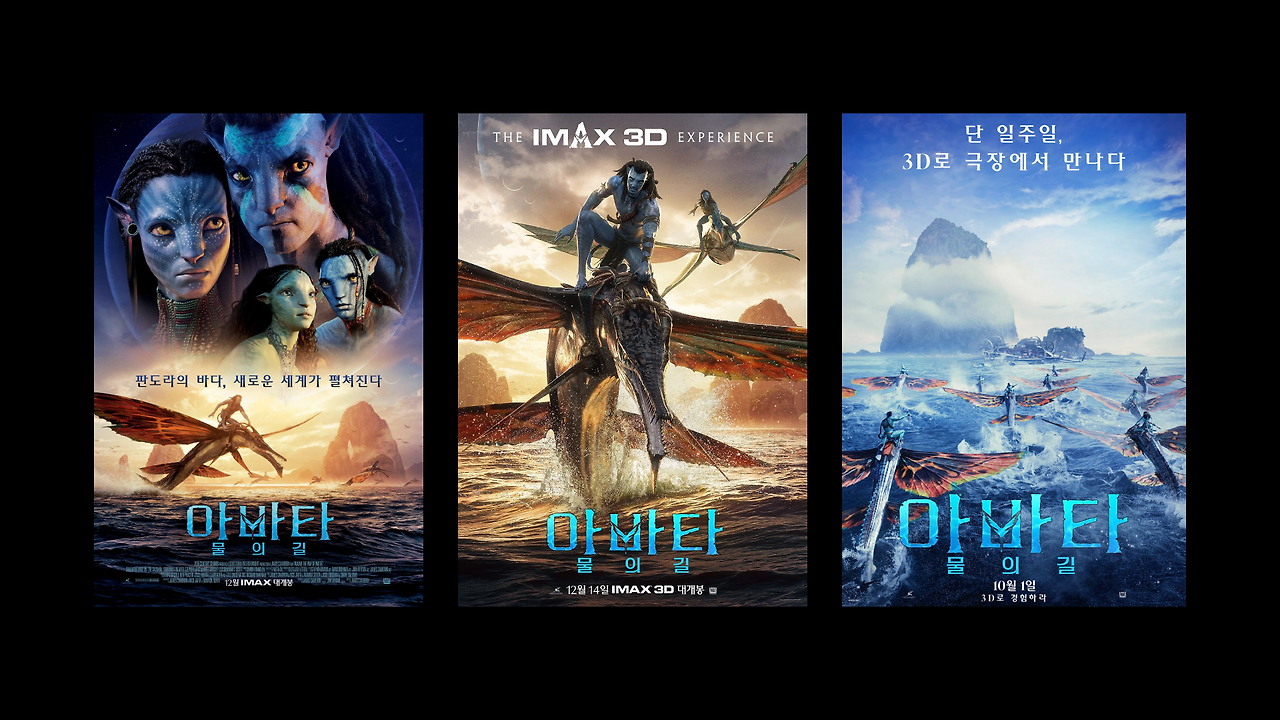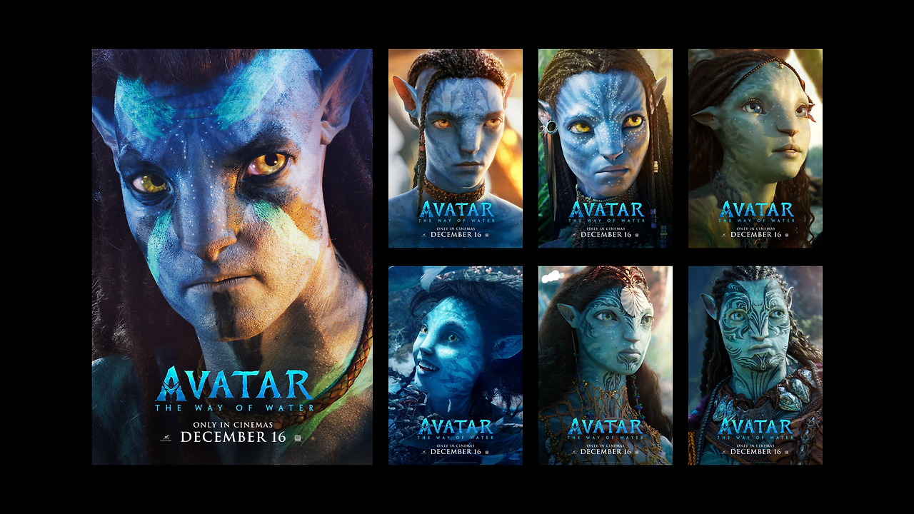 전편이 제이크와 네이티리라는 ‘개인’에 집중했다면, 2편 포스터들은 다양한 연령대의 인물들을 전면에 내세워 이 영화의 핵심 테마가 ‘가족’ 임을 시각적으로 선언한다.