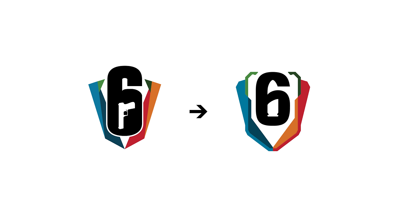 <시즈>의 알파벳 SIX를 검은색 배경에 하얀색 공간으로 파내듯 표현했다. 또한 별도로 쓰이는 엠블럼 숫자 6 안에 권총의 실루엣이나 총알의 형태가 음각으로 숨겨져 있다. ‘Siege’는 ‘포위망’이라는 뜻으로, 네거티브 스페이스 디자인을 통해 벽 너머에 숨어있는 적, 매복, 예측할 수 없는 공격이라는 핵심 플레이 경험을 시각적으로 구현했다.