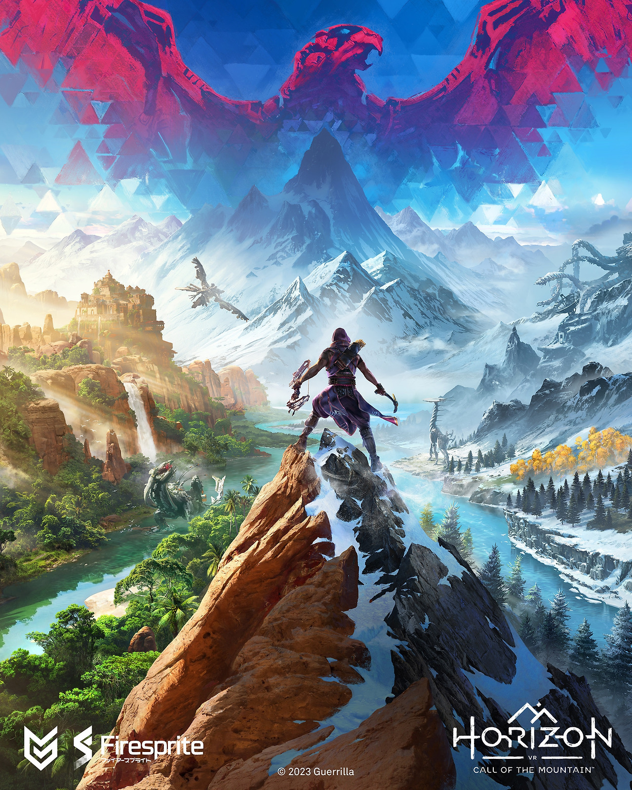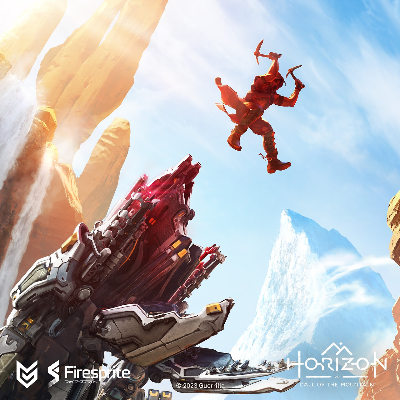 VR 전용 타이틀답게 Horizon 문구 위 산맥 실루엣을 추가했다. 이는 게임의 주 무대가 되는 거대한 산맥과 클라이밍 액션임을 암시하며, VR 문구를 병기해 플랫폼 특성을 직접적으로 보여준다.