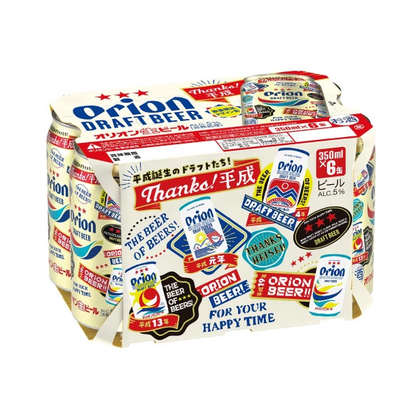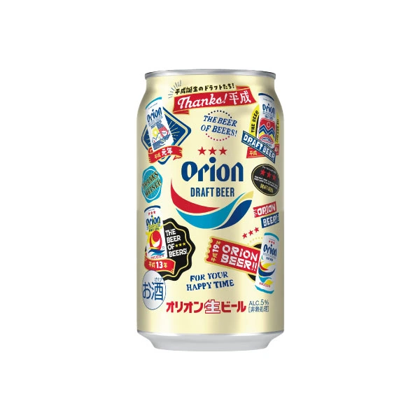 그동안 캔맥주의 디자인은 수 차례 변화가 있었다. 2015년에 드래프트 맥주 발매 55주년을 기념하여 리뉴얼한 캔맥주의 디자인이 지금까지 이어지고 있다. 샴페인 골드의 바탕에 빨간색 별이 세 개 그려져 있고, 그 밑에 ORION이라고 크게 쓰여 있다. 아래에는 빨강, 스카이 블루, 남색 세 개의 물결 모양이 놓여 있다. 샴페인 골드는 맥주의 색을 의미하고, 빨강, 스카이 블루, 남색의 물결 모양은 각각 오키나와의 태양, 오키나와의 하늘, 오키나와의 바다를 상징한다.