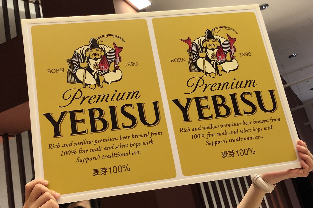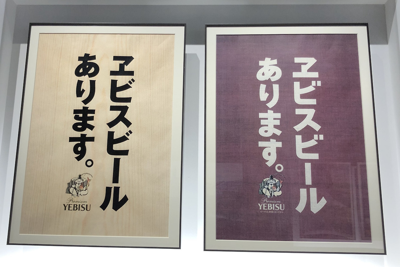 1994년부터 '에비스 맥주 있습니다(We serve Yebisu Beer)'라는 캠페인을 시작하였다. 이 캠페인의 포스터는 극단적으로 단순한데 이를 통해 에비스 맥주가 품질이 좋고 모던한 일본의 맛이라는 것을 표현하고 있다.