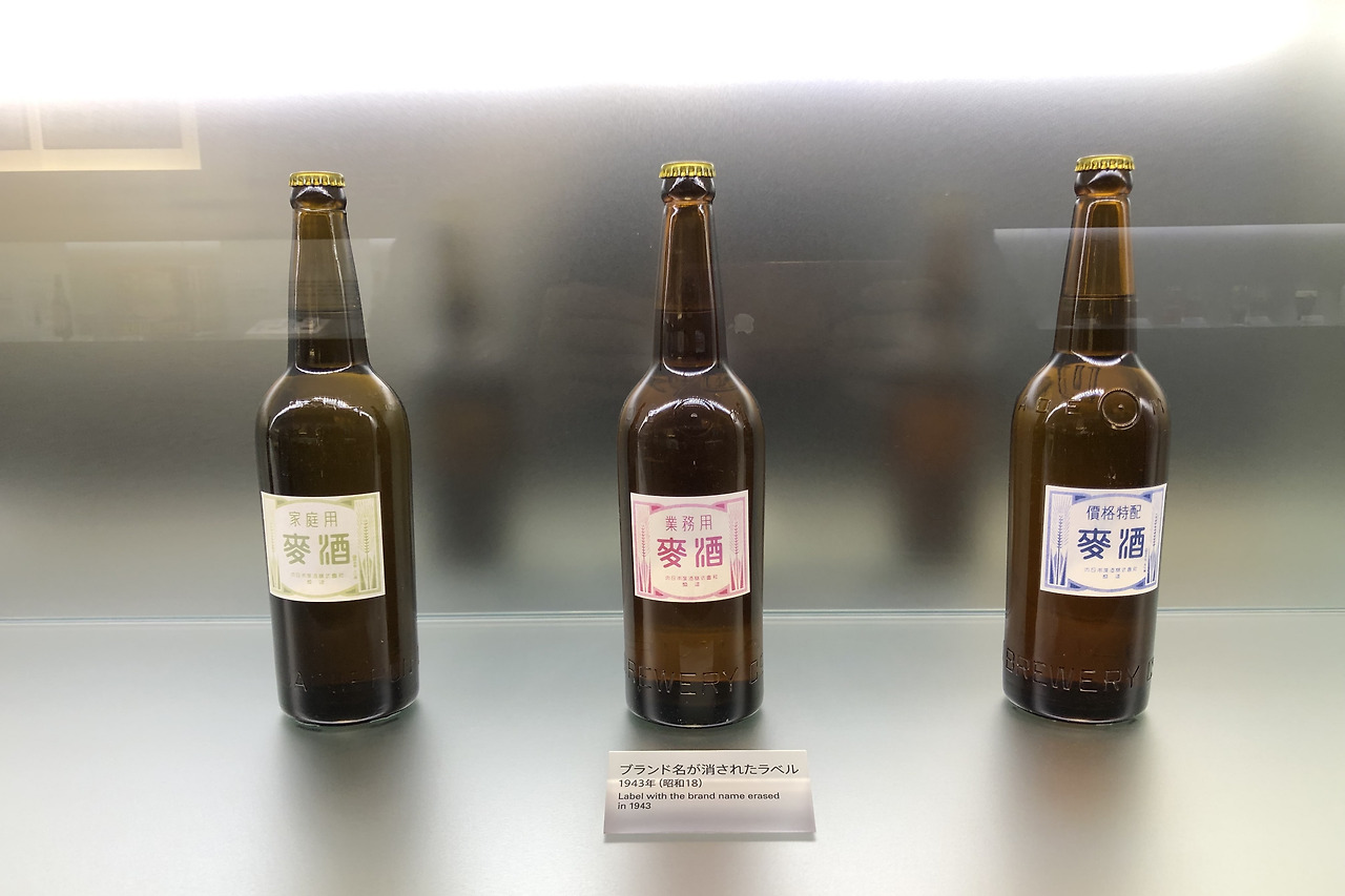 1937년을 전후로 일본 경제는 급속하게 전시상황으로 가고 있었다. 물자를 군수용으로 우선 사용함으로써 물자 부족도 심각하게 됐다. 맥주의 가격은 국가에서 인정한 가격으로 정해졌고, 1940년에는 맥주 배급제를 실시했다. 1943년 5월 에비스 맥주를 비롯한 모든 맥주 회사의 라벨을 폐지하고, 모두 '맥주'라는 라벨만 사용하였다.