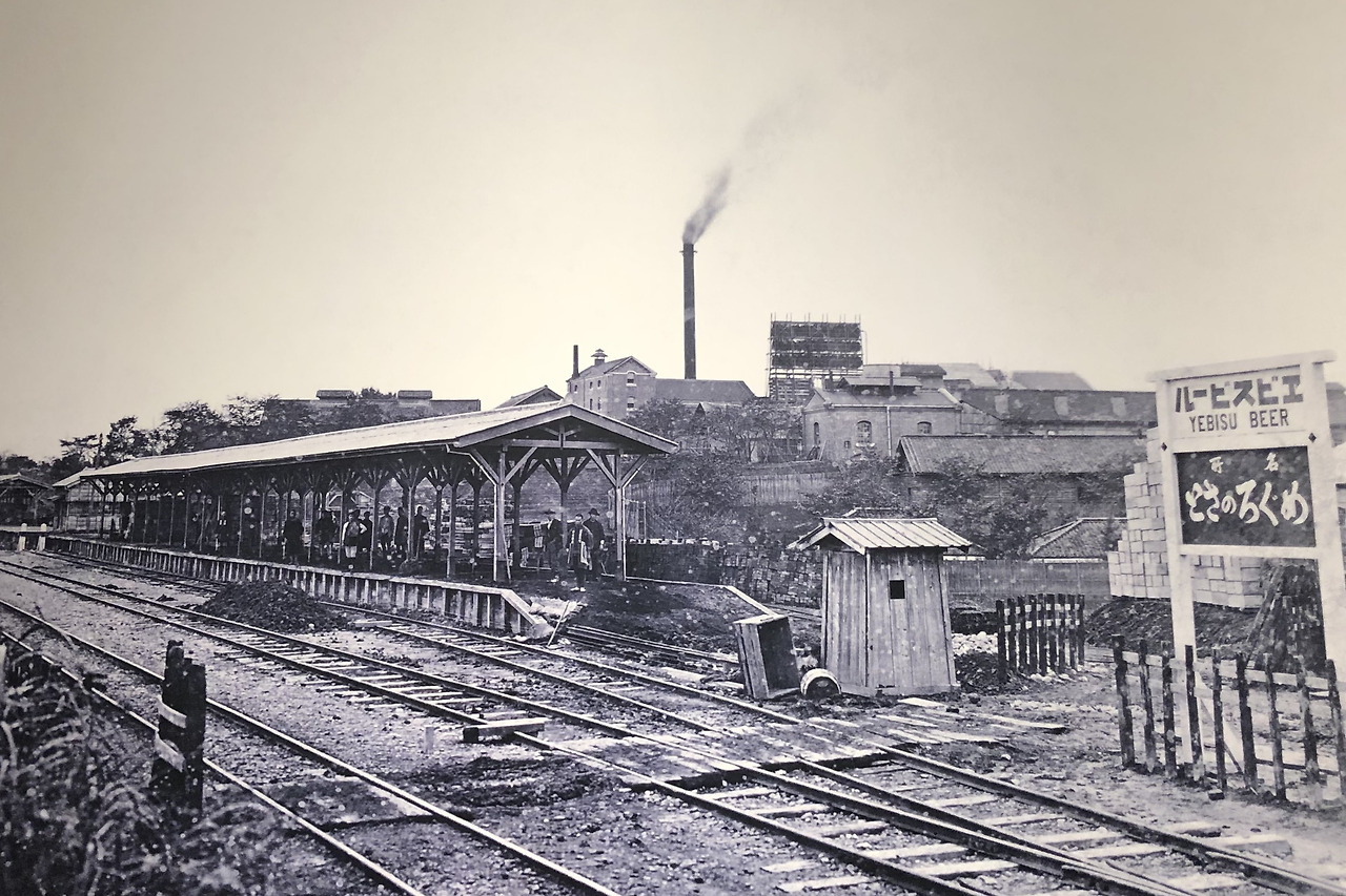 맥주 출하가 증가함에 따라 철도 수송이 필요해 졌다. 1901년 2월, 맥주 공장 내에 에비스 맥주 전용의 화물역을 짓고 역 이름을 '에비스 역'이라고 하였다. 1906년 에비스 역을 시부야 근처에 옮기고 승객들을 실어 나르기 시작했다. 1928년에는 시부야 마을 안에 있는 시모시부야의 주변 지역의 이름을 에비스 1가와 에비스 2가로 변경하였다. 이것은 한 기업의 브랜드가 역사 이름이 되고 지명 이름이 된 매우 진귀한 경우였다.
