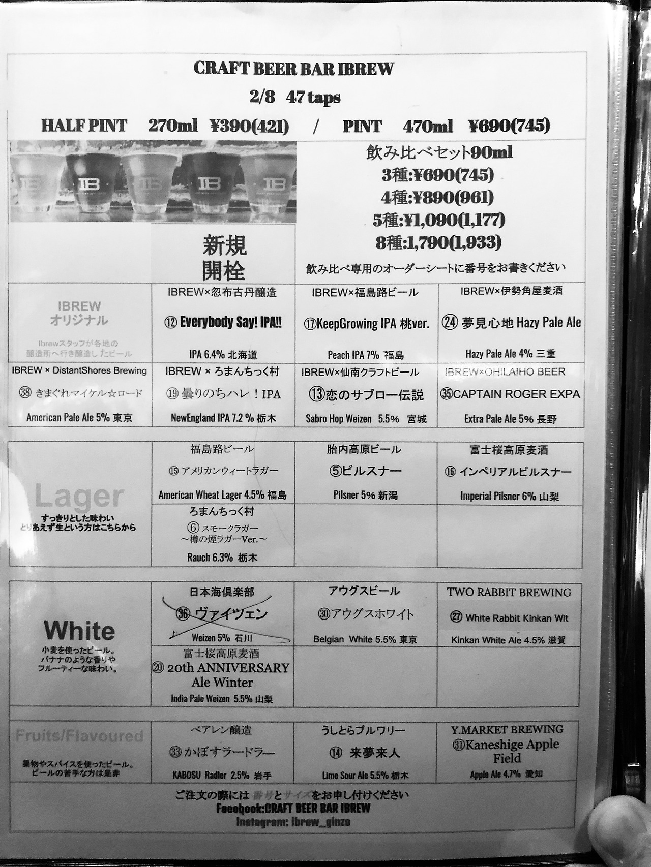 아이브루, 정확한 명칭은 'Craft Beer Bar iBrew'이다. 위치는 긴자역과 도쿄역의 딱 중간에 있다. 어느 역에서 가든 6~700미터 이내의 거리로 걸어서 10분 이내로 갈 수 있다. 이 펍에서 가장 유명한 것은 일본 전국의 지역 맥주 47종을 3천엔 이라는 저렴한 가격으로 무제한으로 마실 수 있는 노미호우다이가 있다는 것이다. 그 이야기를 이제 시작해 보려고 한다.