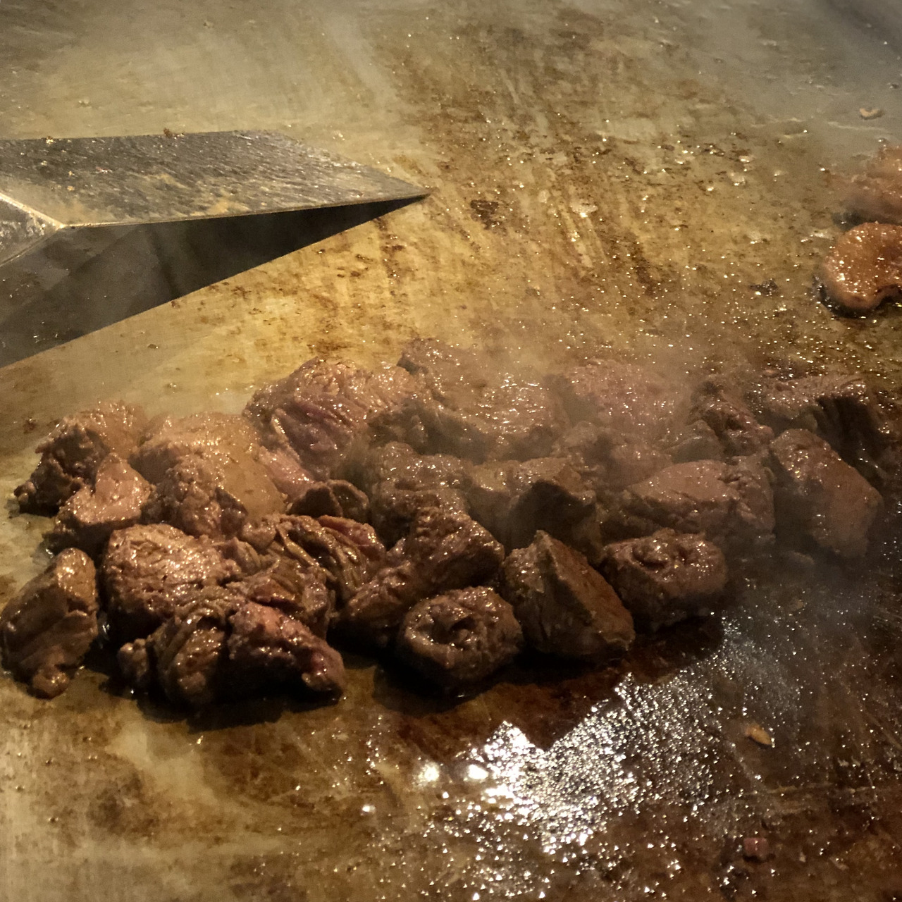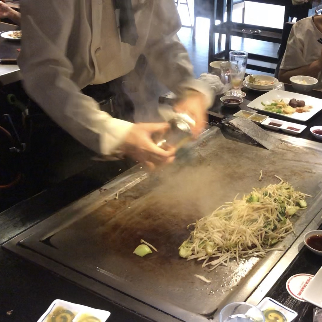 아메리칸 빌리지에는 유명한 맛집은 많으나 딱히 가고 싶은 곳은 없었다. 아무리 맛이 있어도 사람이 많은 곳을 싫어하는 체질인 데다 한국 블로그에서 유명한 맛집 또한 싫다. 포시즌스(四季, Four Seasons) 스테이크도 그런 곳으로만 생각했다. 하지만 오키나와에 왔으니 스테이크 정도는 먹어보자는 생각과 철판구이가 매력적으로 느껴졌다. 오키나와는 오키나와 전투에서 미군이 승리한 1945년부터 일본에 반환된 1972년까지 약 28년간 미국이 점령한 지역이었다. 그래서인지 오키나와의 식문화는 오키나와 전통식뿐만 아니라 스테이크나 햄버거 등의 미국 식문화가 발달되어 있다. 일본어로 데판야끼(てっぱんやき)라고 불리는 철판구이는 말 그대로 데판(てっぱん)을 사이에 두고 요리사가 고기를 구워(やき) 손님에게 직접 서빙해 주는 요릿집이다. 요리사가 직접 구워 주다 보니 고기가 정말 맛있을 즈음에 먹을 수 있어 좋고, 요리사의 멋진 요리 솜씨도 볼 수 있어 좋다. 요리사가 보여주는 불쇼와 요리 기구를 이용한 저글링 쇼는 덤이다.