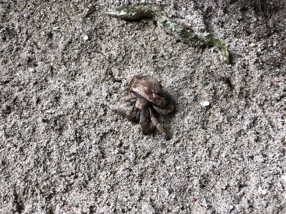 인기척을 느낀 소라게는 갑자기 앞으로 걷기 시작했다.