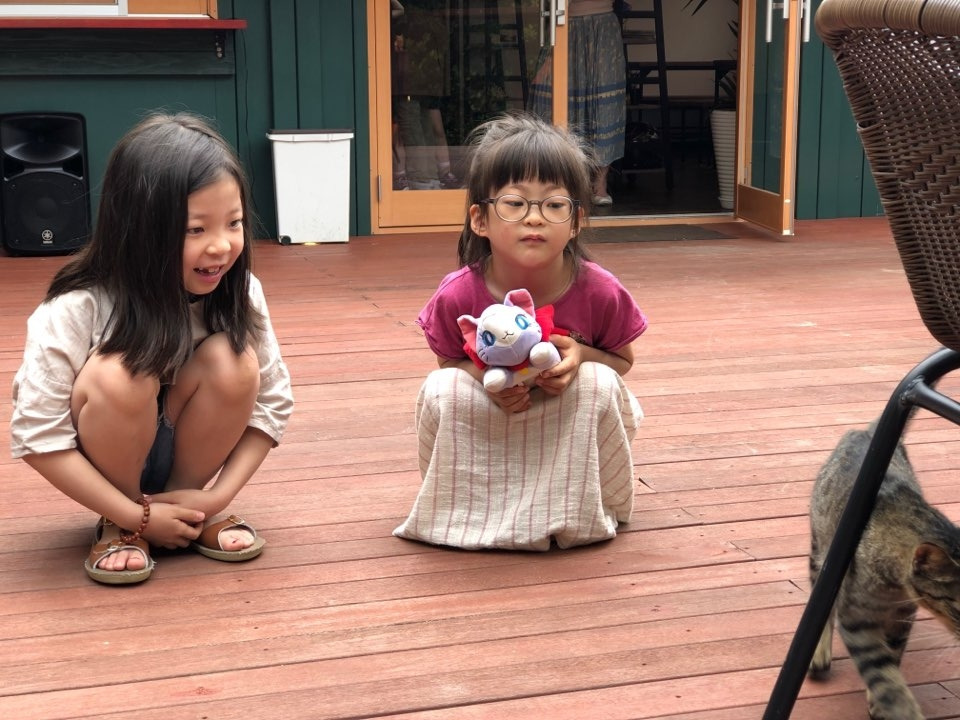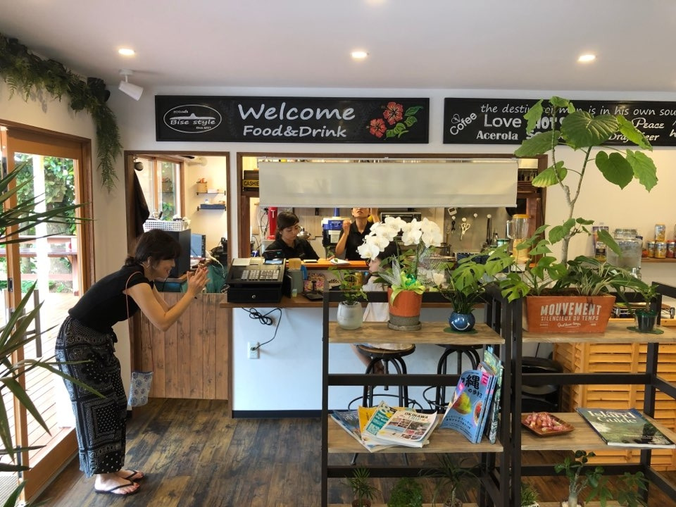 가족들은 무작정 걷고 있었다. 정말 시간과 공간을 잃어버린 듯했다. 나라도 목적지를 정해야 했다. 내심 인터넷에서 찾은 바다가 보이는 카페 방향으로 걷다가 우연히 '비세스타일'이라는 카페에 들어갔다. 더워서 쉴 곳이 필요한 순간이었다. 이 카페는 이 곳에서 보기 드문 새로 지은 건물이었다. 커피와 아이들 음료를 주문하고 주위를 살펴보니 우치난츄 두 분이 일하고 계셨다. 이번에는 우치난츄냐고 묻지 않았다. 이제는 딱 보면 알 것 같았다. 밖으로 나오니 아이들은 고양이와 놀고 있었다. 직원에게 고양이 이름이 있냐고 물으니 이름은 없다고 하셨다. 우리는 그 고양이에게 '자키'라는 이름을 지어주었다.