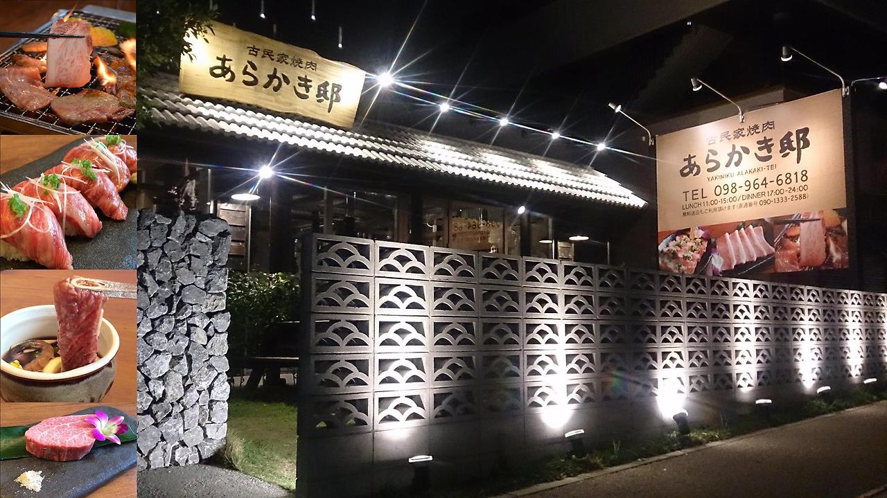 어제의 데자뷔가 발생하고 있었다. 하지만 이번에도 장인어른이 나서 주셨다. 내가 주차를 하는 동안 빠르게 나가셔서 근사한 식당 하나를 섭외해 놓으셨다. 자리 예약까지 모두 완료. 구글에서 검색해 보니 'Old Houses Grilled Meat Aragaki House'라는 식당이다. 간판에는 일본어로 작은 글씨로 '古民家焼肉', 큰 글씨로 'あらかき邸(아라카키 집)'이라고 쓰여 있다. 오래된 민가를 식당으로 만든 야키니쿠 전문점으로 이시가키 씨의 저택' 쯤으로 해석된다. 이 곳은 오래된 이자카야 분위기가 나고 좌식으로 앉을 수 있는 곳이다. 여기서의 주문 방식은 기본적인 소통 방식인 대화다. 형편없는 일본어 실력으로 이것저것 묻다 보니 주문하는데만 30분이 걸렸다. 와규와 아구를 섞어서 적당히 시켰다.