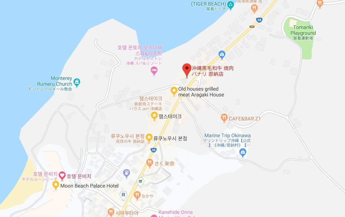 다음 날 저녁, 우리 가족은 다시 한번 고기에 굶주린 좀비가 되어 가고 있었다. 문비치 호텔 근처에는 오키나와에서도 유명한 데판야끼 스테이크 하우스 '잼스테이크'가 있다. 원래 이 곳은 가격이 조금 비싼 편인데 대신 런치 가격이 저렴하고 어린이를 위한 메뉴가 따로 있어 가족 단위 관광객들에게 인기가 좋은 곳이다. 점심에 왔으면 좋았겠지만 낮에는 관광 때문에 바쁘고 저녁에 올 수밖에 없었다. 그런데 무언가 좀 이상했다. 주차장이 텅텅 비었고, 식당도 불이 껴져 있는 듯했다. 그러고 보니 오늘은 화요일, 급하게 구글 지도를 돌려보니 화요일은 휴무. 개인적인 느낌적인 느낌인지 모르겠지만 오키나와의 휴무일은 동네마다 다르다. 어떤 동네는 주로 화요일에 쉬고, 어떤 동네는 주로 목요일에 쉬고, 이런 식이다. 한 가지 공통점이 있다면 주말에는 잘 쉬지 않는다. 대신 주중에 하루, 혹은 이틀 정도를 쉰다. 슈리성으로 가는 날을 월요일로 잡은 이유도 화요일에 쉬는 상점이 많았기 때문이다. 비세자키의 상점은 주로 수요일에 쉬는 듯했다.