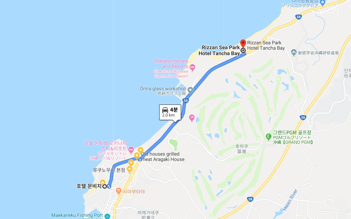 문비치 호텔에서 리잔씨파크 호텔까지의 아구 요리 전문점