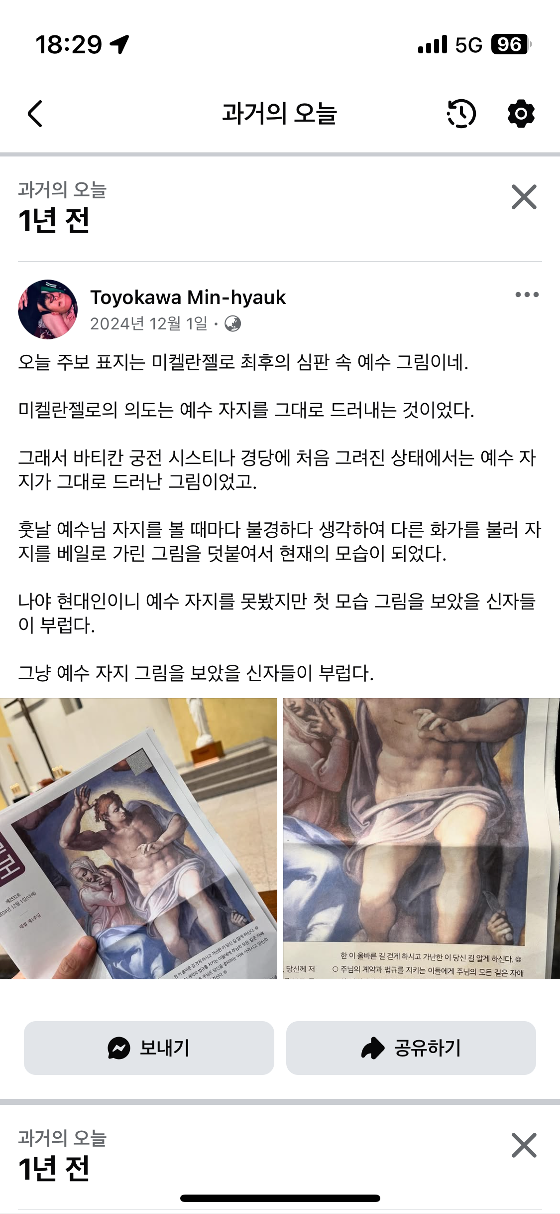 페북 과거의 오늘 컨텐츠 보니 1년 전 나는 예수 자지에 대해 논했다.