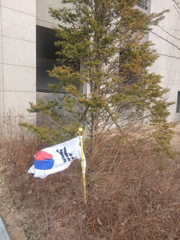 그런 혹한의 겨울을 보내고 계절은 새싹이 움트는 3월이다. 3월 근무 첫날, 나는 삼일절을 기억에서 지울 수 없다. 나라 독립을 외치며 돌아가신 유관순 열사 등 독립투사를 기리는 날 외에도 태극기가 바람에 날려 화단에 수직으로 내려 꽂혀 있는 장면을 보고 만다. 세상에 이런 일이 있을까 프로그램에 나올 정도의 드문 사건이라 잊으려고 해도 잊을 수 없다.