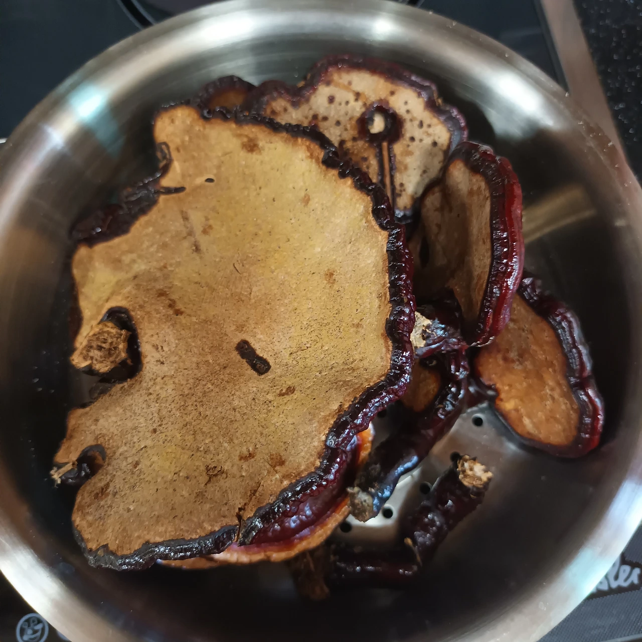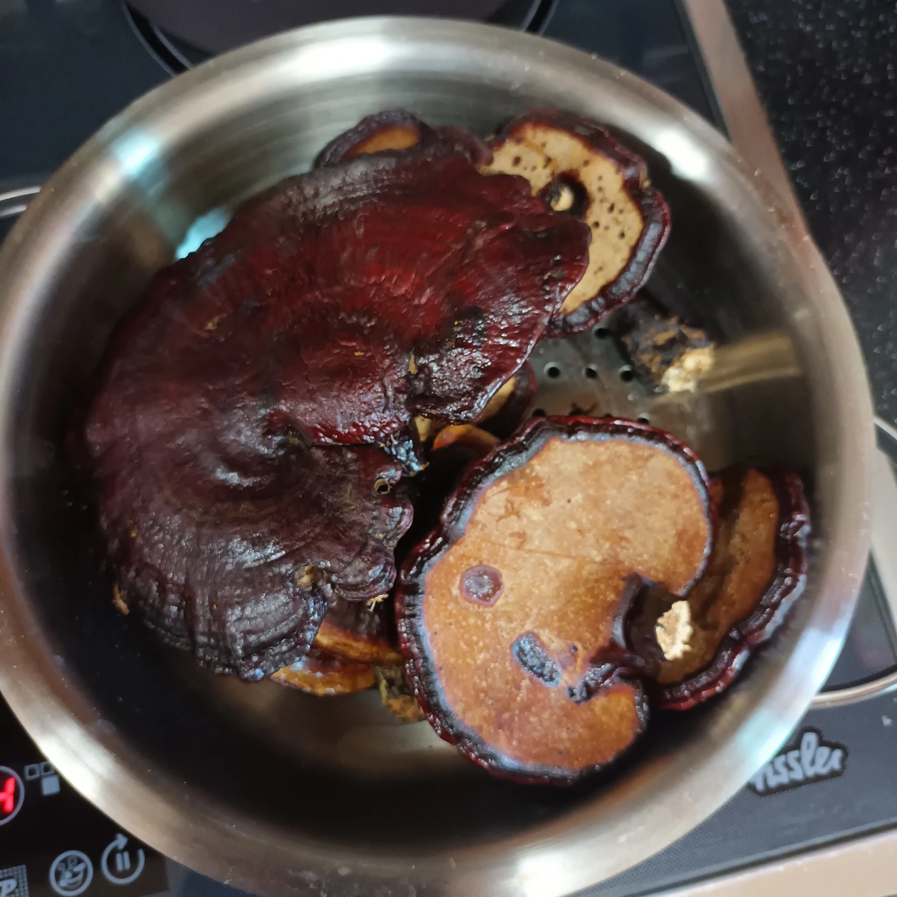 그다음 날 나는 손질해 말려둔 버섯을 찜 솥에 넣은 다음 10여 분 정도 쪄냈다. 그렇게 긴 시간이면 찌개가 끓고 고등어가 익혀 나오고도 남는 시간이건만 생 것인지, 쪄낸 것인지 구분이 되지 않을 정도로 속이 단단했다. 나중에 차를 끓일 때마다 적당한 크기로 자르는 것이 엄두가 나지 않을 것 같았다. 쪄 내자마자 가위질했다. 재차 그늘에 말릴 것은 말리고, 그 일부를 차 주전자에 넣고 시험 삼아 영지버섯 차를 끓였다. 쓴맛이 강하다고 해 대추를 넣었더니 불그스레하면서도 약간은 거무스레한 빛깔이 우러난 게 먹음직스러워 보였다.