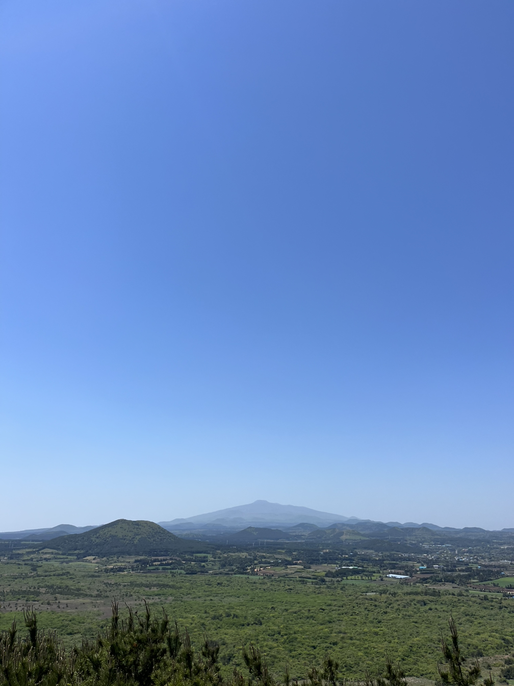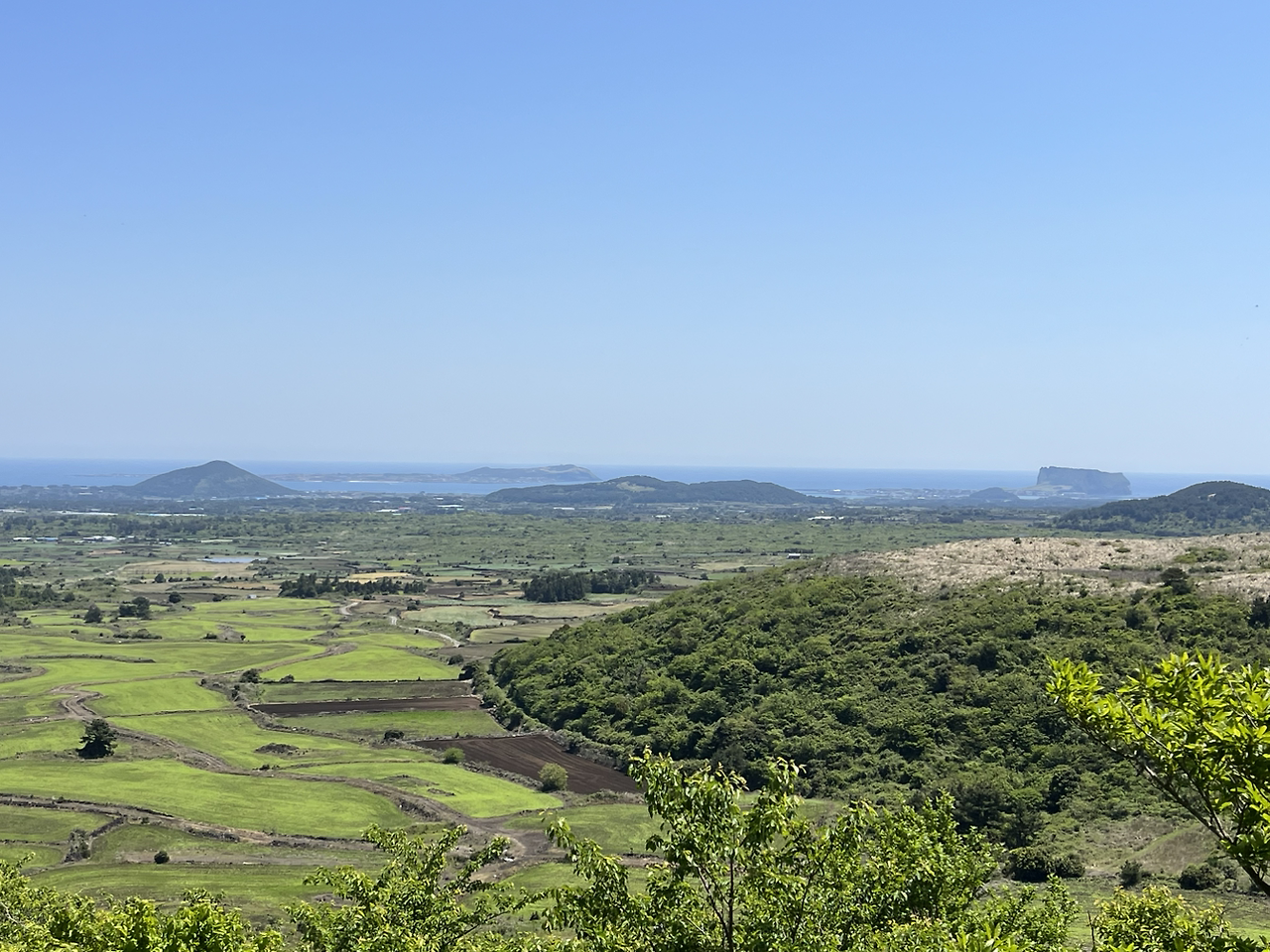 다른 오름이 오르는데 짧게는 10분에서 길게는 20분 정도 걸린다면, 다랑쉬 오름은 그보다 조금 더 긴 30분 남짓이 걸렸다. 올라가면서 숨이 차오르는 만큼 땀도 차올라, 입고 간 겉옷은 각자 허리에 둘러매고 천천히 정상으로 향했다. 마침내 도착을 하고 나니 한라산부터 성산일출봉까지 파노라마처럼 눈앞에 펼쳐졌다. 오름 아래에는 색색깔의 밭들이 마치 조각퀼트처럼 엮여있었다.