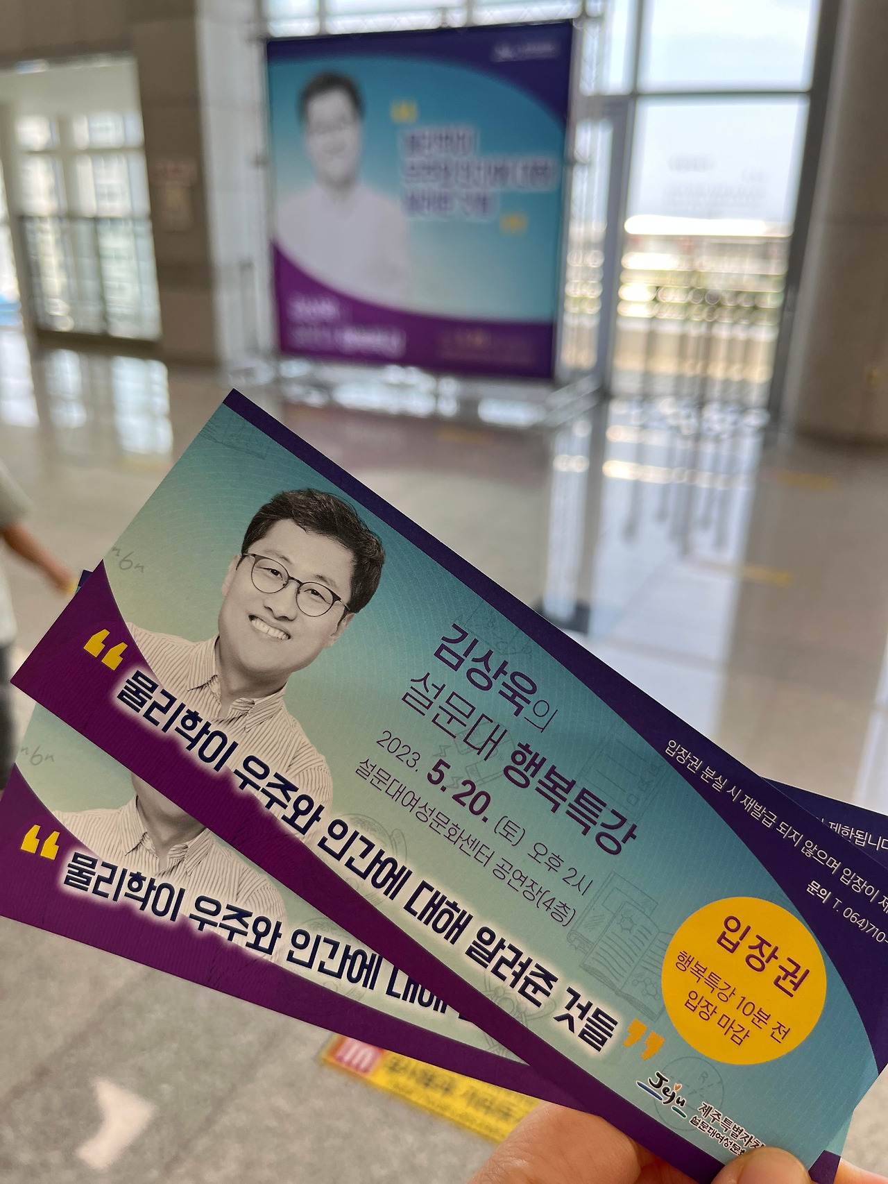 공무원인 지인이 갑자기 한 장의 사진을 단톡방에 투척했다. 김상욱 교수가 제주에서 무료 강연한대요. 관심있는 분들 신청 고고. 앗 저요. 평소 과학에 관심이 많아 대중과 소통하는 과학자들의 활동을 눈여겨보고 있는지라, 이런 강연이 있다는 소식에 귀가 솔깃했다. 저요라고 말하긴 했지만, 내가 혈혈단신도 아니고 애 둘 딸린 엄마인데, 한 시간이 넘는 강연을 과연 볼 수 있을 것인가. 남편에게 나 강연 듣고 올게, 하고 혼자 도망갈 수도 없고 말이지. 어떻게 하지 고민을 하다 슬쩍 신청 가능 연령을 봤는데, 어라 8세 이상이다. 초등학생 이상 가능하다고? 첫째가 9살이고, 둘째가 7살, 둘째가 3월생이니 예전 같으면 빠른생으로 입학이 가능했을지도 모른다. 한 번 우겨서 가볼까.