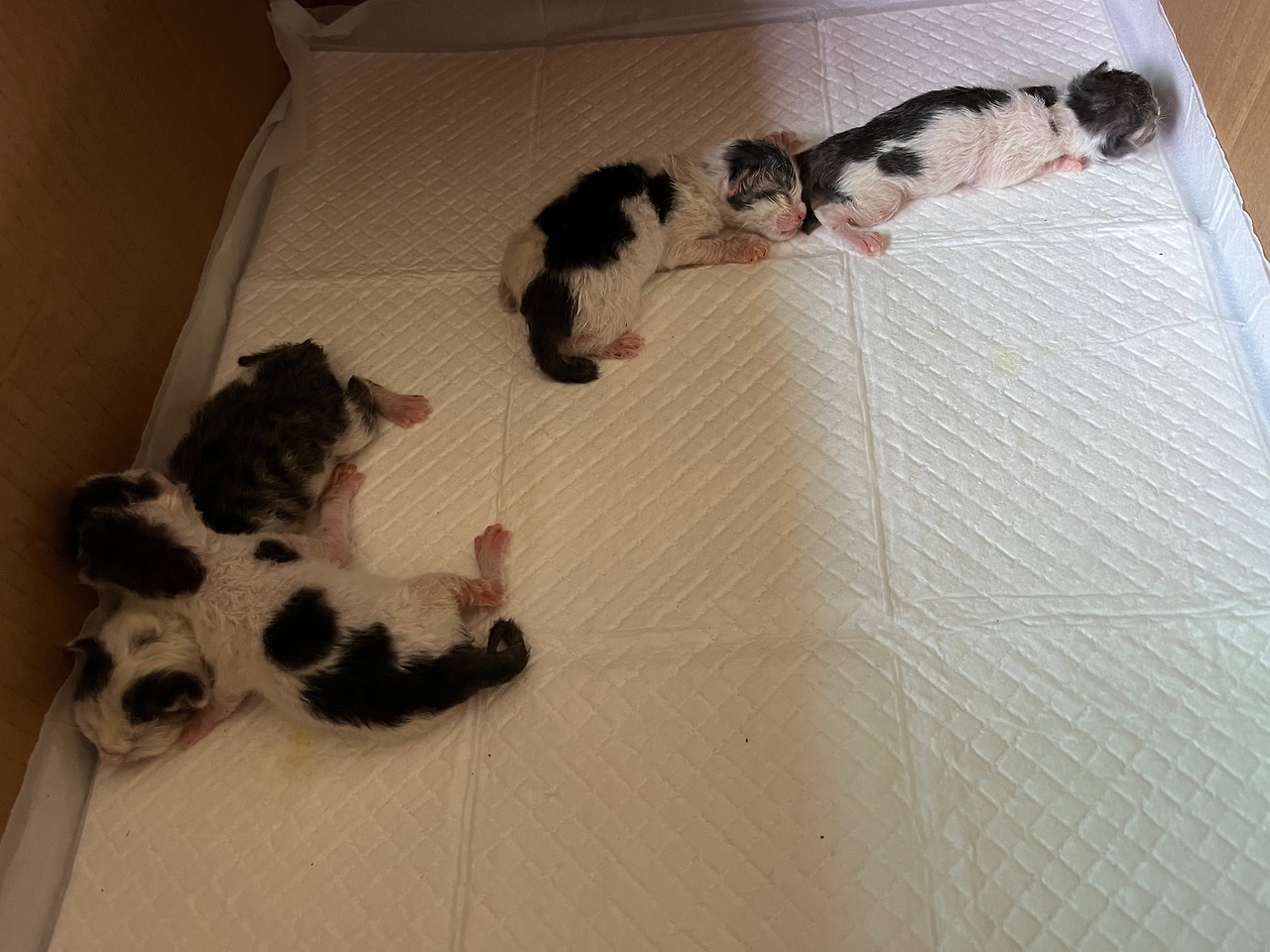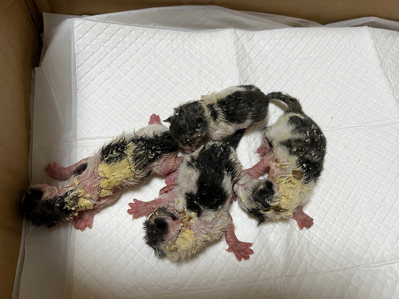 세 마리의 탯줄을 모두 자르고 마지막 한 마리의 탯줄을 자르려는 순간, 앞발가락 하나에 가위가 스치면서 피가 났다. 나는 너무 미안한 마음에 어쩔 줄을 몰라 하다가, 일단은 상처보다 목숨을 살리는 게 먼저인 것 같아 과감히 탯줄부터 끊어냈다. 태반과 온갖 이물질로부터 놓여난 새끼들은 깨끗한 박스 안에서 잠시 숨을 고르는 듯했다. 그렇게 했는데도 새끼들 몸에는 잘 떼지지 않는 누런 이물질이 잔뜩이었다.