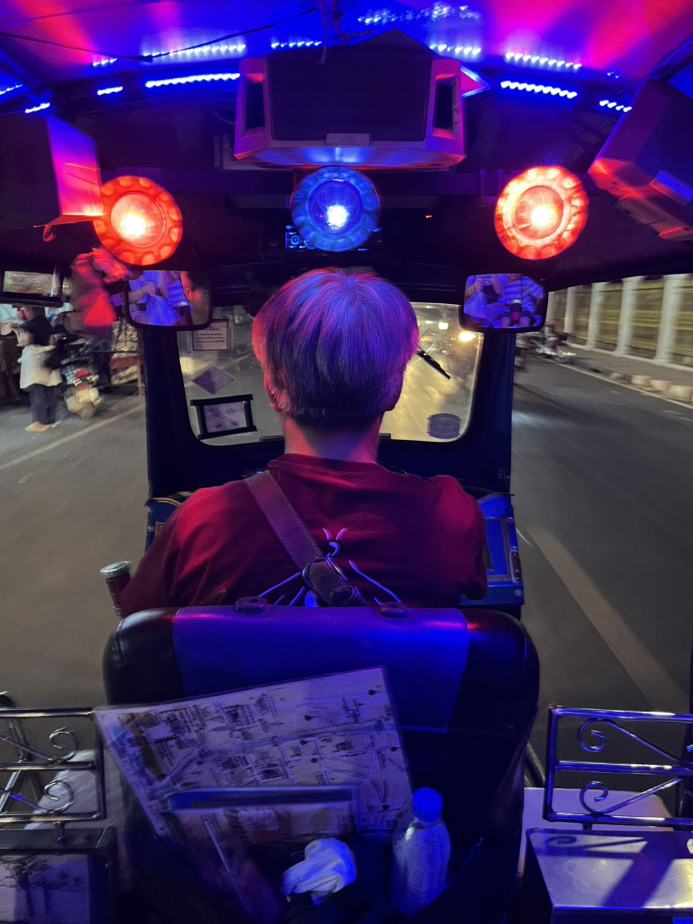 얼마만의 툭툭인가. 다른 동남아 국가나 인도에서는 가장 저렴하고 대중적인 교통수단이 툭툭이라 자주 애용하곤 했었다. 이곳에서는 처음 잡은 툭툭 기사가 너무 비싸게 값을 부른 데다 흥정에도 실패하면서 다시 탈 생각을 하지 못하고 있었다. 그러다 갑자기 괜찮은 값에 툭툭에 올라타니 기분이 달뜬다. 게다가 아이들은 첫 탑승이고 지금은 밤이 아닌가.