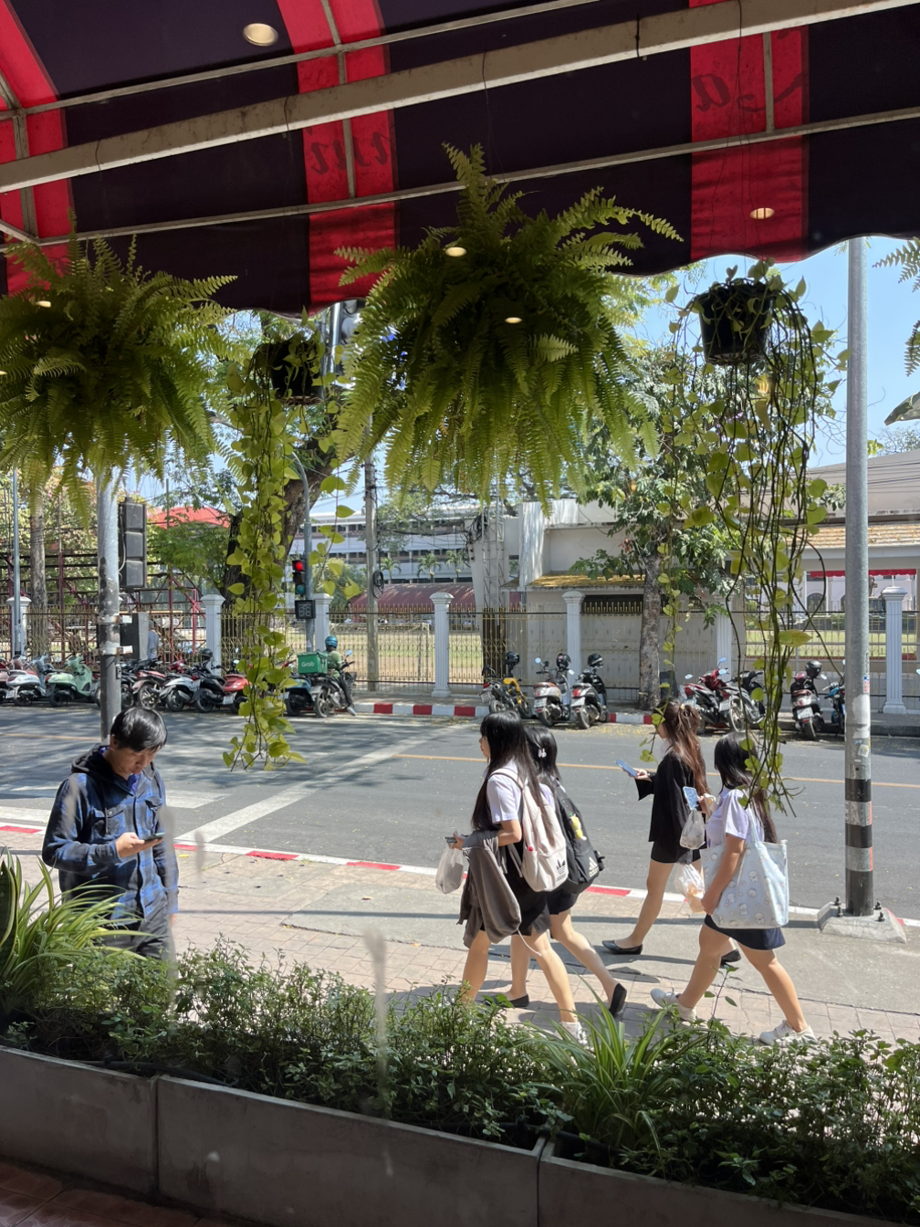 창가에 자리를 잡고 앉아 한참동안 오가는 사람들을 응시했다. 신발까지 규정이 있는지 똑같은 교복에 신발을 신은 학생들이 삼삼오오 모여 지나간다. 점심시간인 걸까. 오토바이를 타고 잠시 학교를 벗어나는 커플, 음악에 맞춰 춤을 연습하는 여학생들, 손을 꼭 잡고 좁은 인도를 지나가는 남학생들, 곱게 화장을 하고 예쁘게 머리를 빗어올린 여학생들까지.