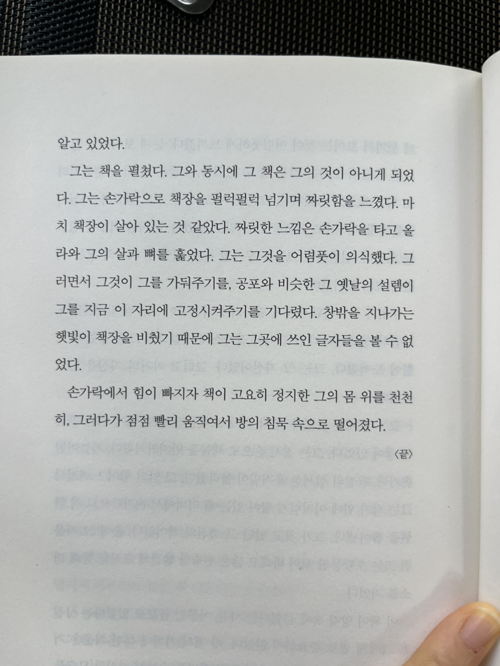 나는 다시 테이블 하나를 차지하고 앉아 책을 마저 읽었다. 아이들이 2분에 한 번꼴로 번갈아 가며 나를 부르지만 이만하면 양호한 것. 이 정도라도 쉴 수 있음에 감사하다. 물놀이 하다 나온 아이들과 사온 음식을 나눠먹고 아이들은 또 물놀이를 하고 나는 또 책을 읽었다. 중간중간 남편과 연락을 주고 받았다.