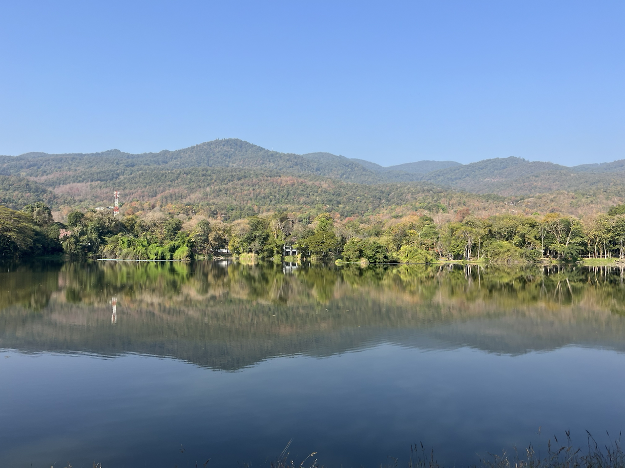 어디를 갈까 하다가 그제 우연히 알게 된 저수지가 생각났다. 아이들과 그랩을 타고 치앙마이 대학교 근처의 앙깨우 저수지로 향했다. 오랜만에 탁 트인 곳에 오니 몸이 정화되는 느낌이다. 저수지 둘레를 조깅하는 여행객들이 여럿 보인다. 아이들과 함께 길을 따라 걸었다. 저수지 뒤편으로는 도이수텝 산이 보인다. 산과 물이 공존하는 풍경은 보는 것만으로도 위안이 된다.