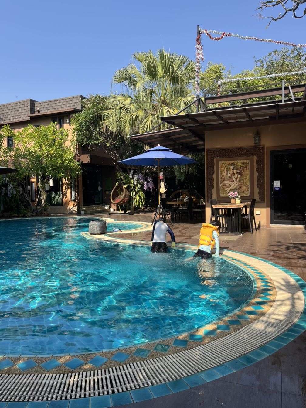 맛있게 먹은 뒤 두 번째 숙소로 향했다. 시내를 벗어나 조용한 로컬 지역의 작은 숙소에 있을 예정이다. 상권이 어느 정도 형성되어 있는지 알 수가 없어 일부러 카페와 레스토랑도 함께 운영하는 곳으로 예약을 했다. 수영장도 있고 방도 넓고 조식도 주는데 일박에 8만 원 정도다. 치앙마이에서는 일부러 저렴한 숙소를 주로 알아봤는데 여러 서비스를 감안하면 이 금액이 괜찮은 것 같았다. 특별히 뭘 하지 않아도 뒹굴대며 보내기 딱 좋은 숙소랄까.