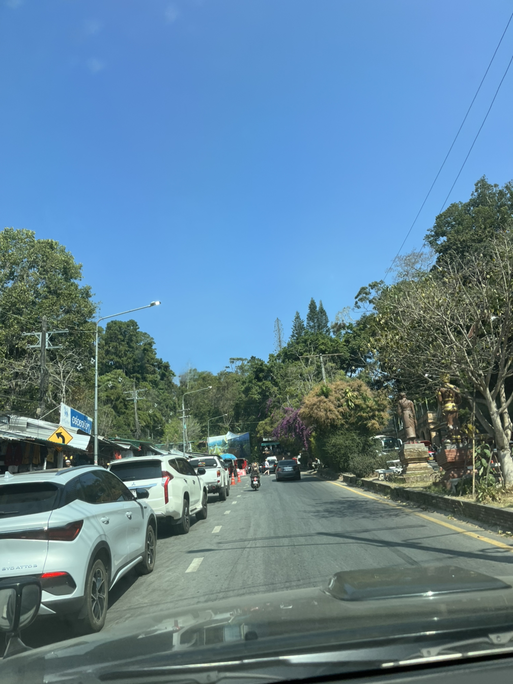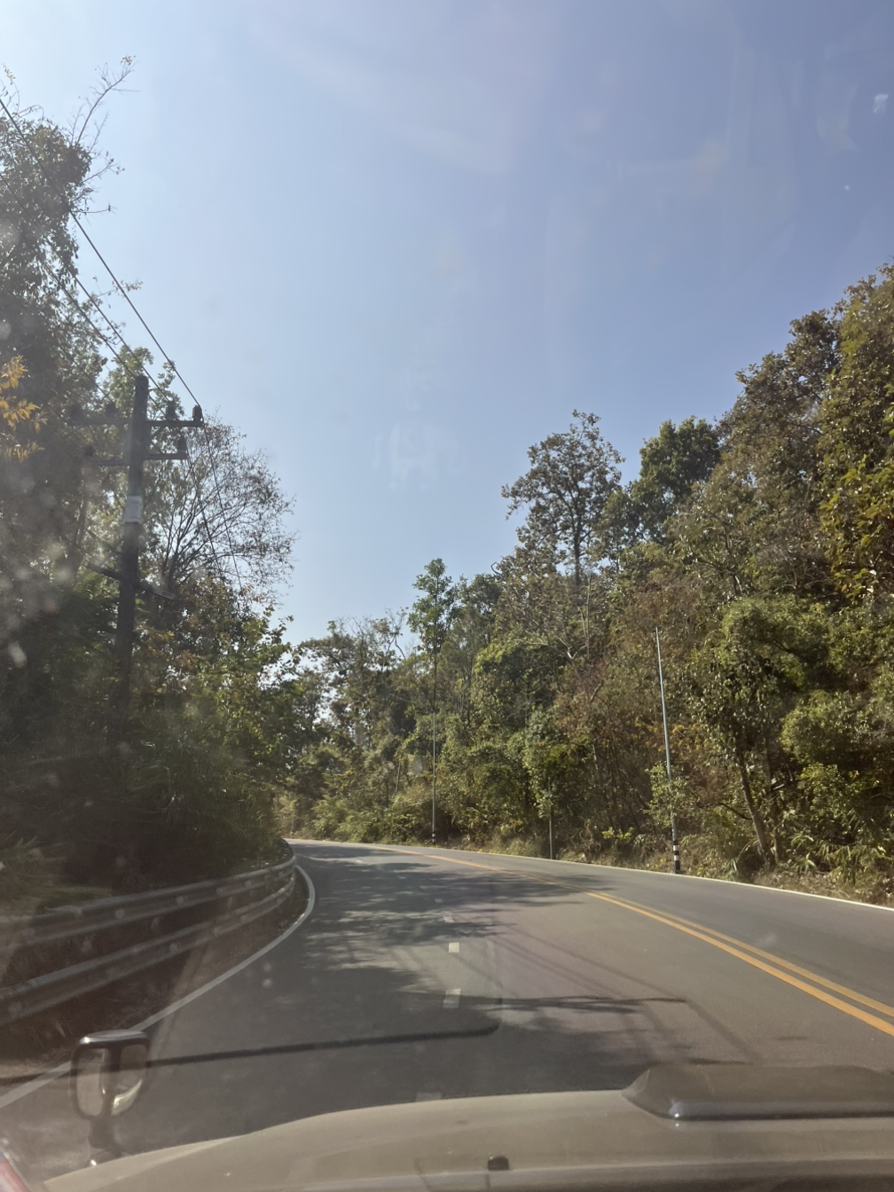 여러 말들이 오가고 흥정 끝에 사원에서 1.5시간을 보내는 조건으로 550바트를 주고 다녀오기로 약속을 했다. 숙소에서부터 꼬박 40분 정도를 달려갔다. 산을 오를 때는 꼬불꼬불한 길을 한참 따라갔는데 그 풍경이 한국의 산 같기도 했다.
