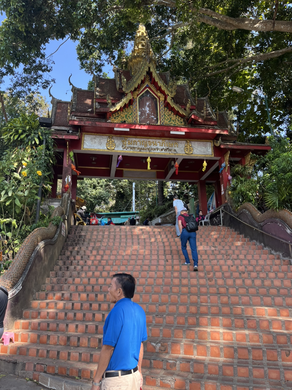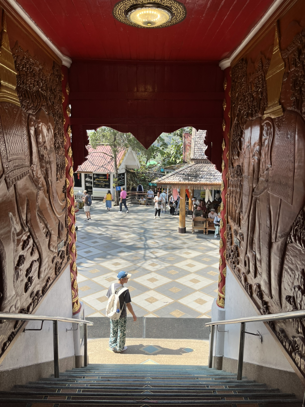 도이수텝 사원까지는 306개의 계단을 직접 오르거나 오른편 입구에 있는 엘리베이터를 타야 한다. 케이블카인 줄 알았는데 크기나 작동방식이 엘리베이터에 가까웠다. 평소라면 걸어갔을 텐데 남편이 갑자기 계단만 걸으면 무릎 통증이 심하게 오는 바람에 엘리베이터를 타고 올랐다.