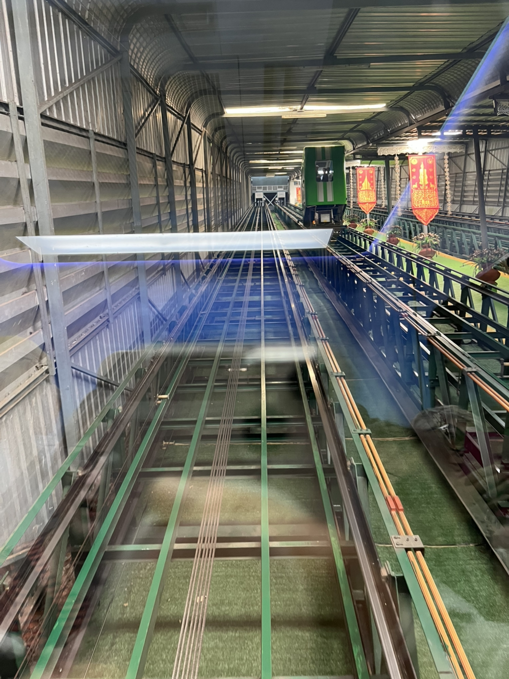 입장료 30바트에 왕복 엘리베이터 비용이 20바트, 일인당 총 50바트가 들었다. 현금만 받는다. 엘리베이터는 언뜻 보면 스위스 융프라요흐를 오르는 레일 같았다. 그에 비하면 구간도 짧고 차량 크기도 훨씬 작았지만. 가파른 언덕을 오르는 엘리베이터는 양쪽으로 두 개가 운영되고 있었다. 속도가 느리지만 워낙 짧은 구간이라 금방 위아래를 오고갔다.