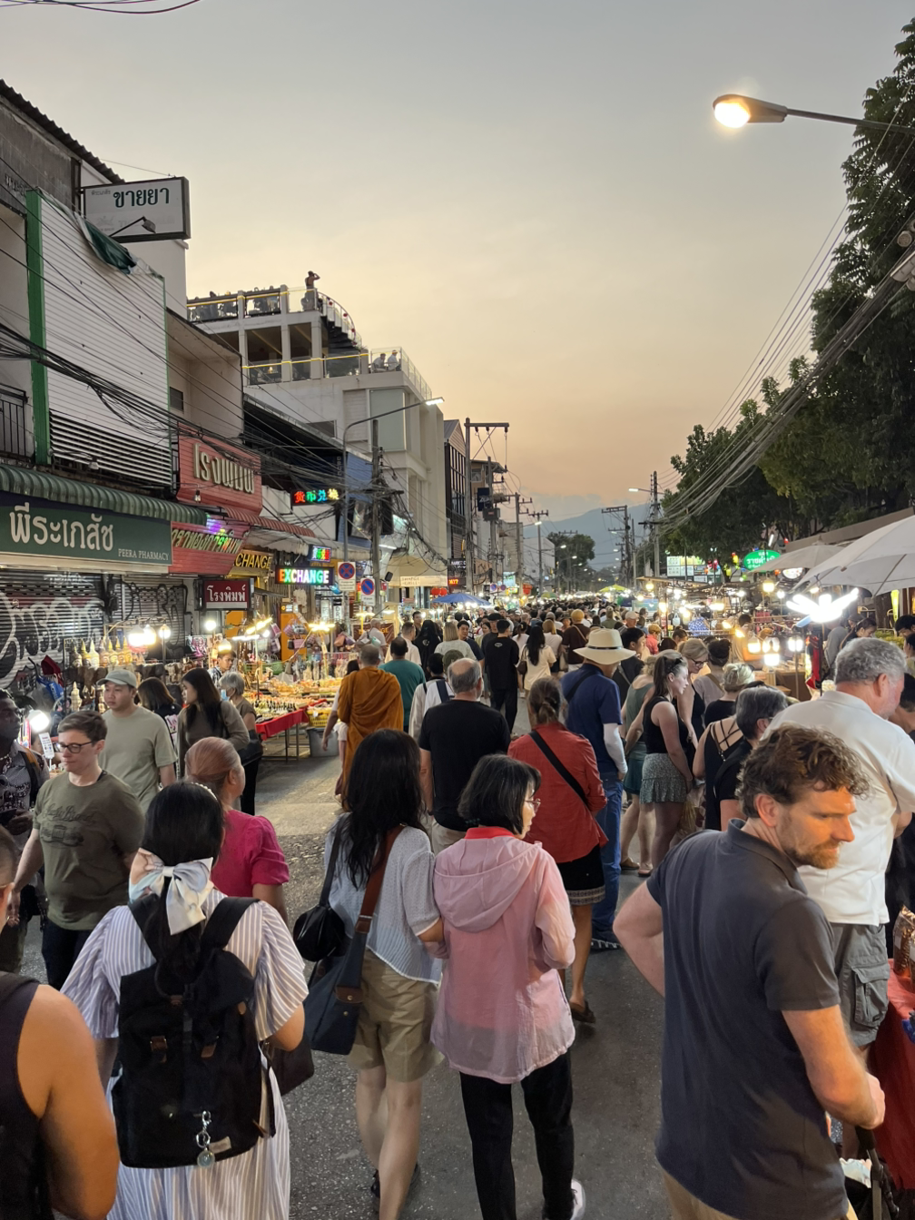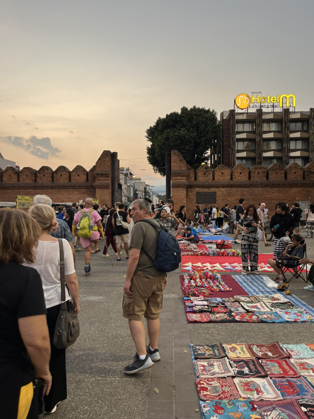 저녁에는 타페 게이트부터 왓 프라싱까지 1km에 걸쳐 열린다는 선데이 마켓으로 향했다. 가장 큰 야시장이고 가장 저렴하게 물건을 판매한다는데 어떤 곳일지 궁금했던 터였다. 시장의 규모는 상상 그 이상이었다. 메인 스트리트 뿐만 아니라 중간중간 빠지는 골목과 사원 안쪽까지 상인들이 좌판을 깔고 별의별 물건과 음식을 다 팔고 있었다.