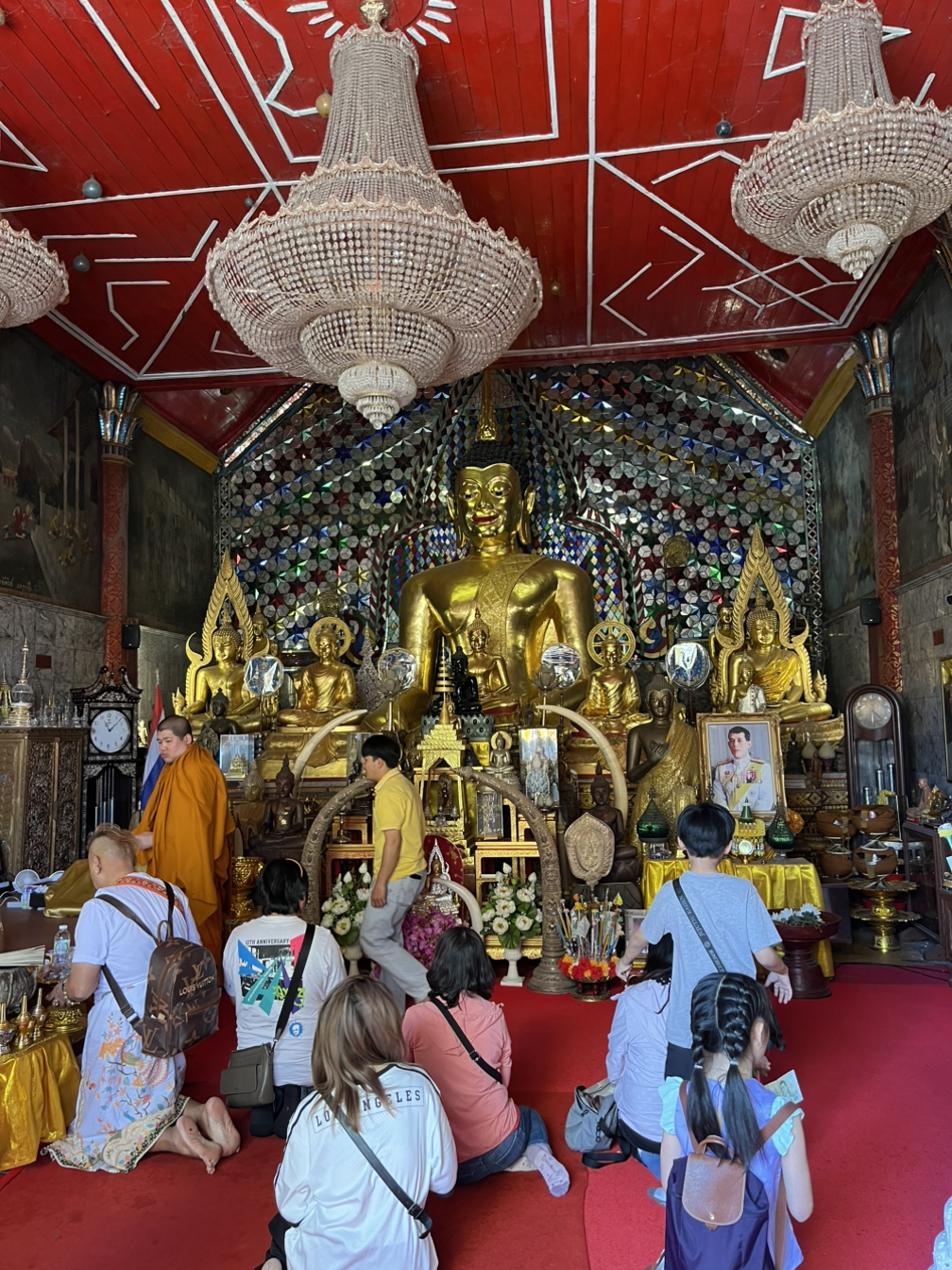 파란 하늘 아래 태양빛을 받으니 불상도 파고다도 금빛으로 반짝였다. 태국 사람들은 금색을 무척 좋아하는 듯하다. 중요한 장식이나 물건들은 대개 금색으로 되어있다. 입장권 뒤에 사원 안내도가 있어서 그걸 보며 사원을 작게 그리고 크게 두 번 돌았다. 한 번은 신발을 벗고 한 번은 신발을 신고. 사원 안쪽은 신발을 벗고 걸어야 한다.