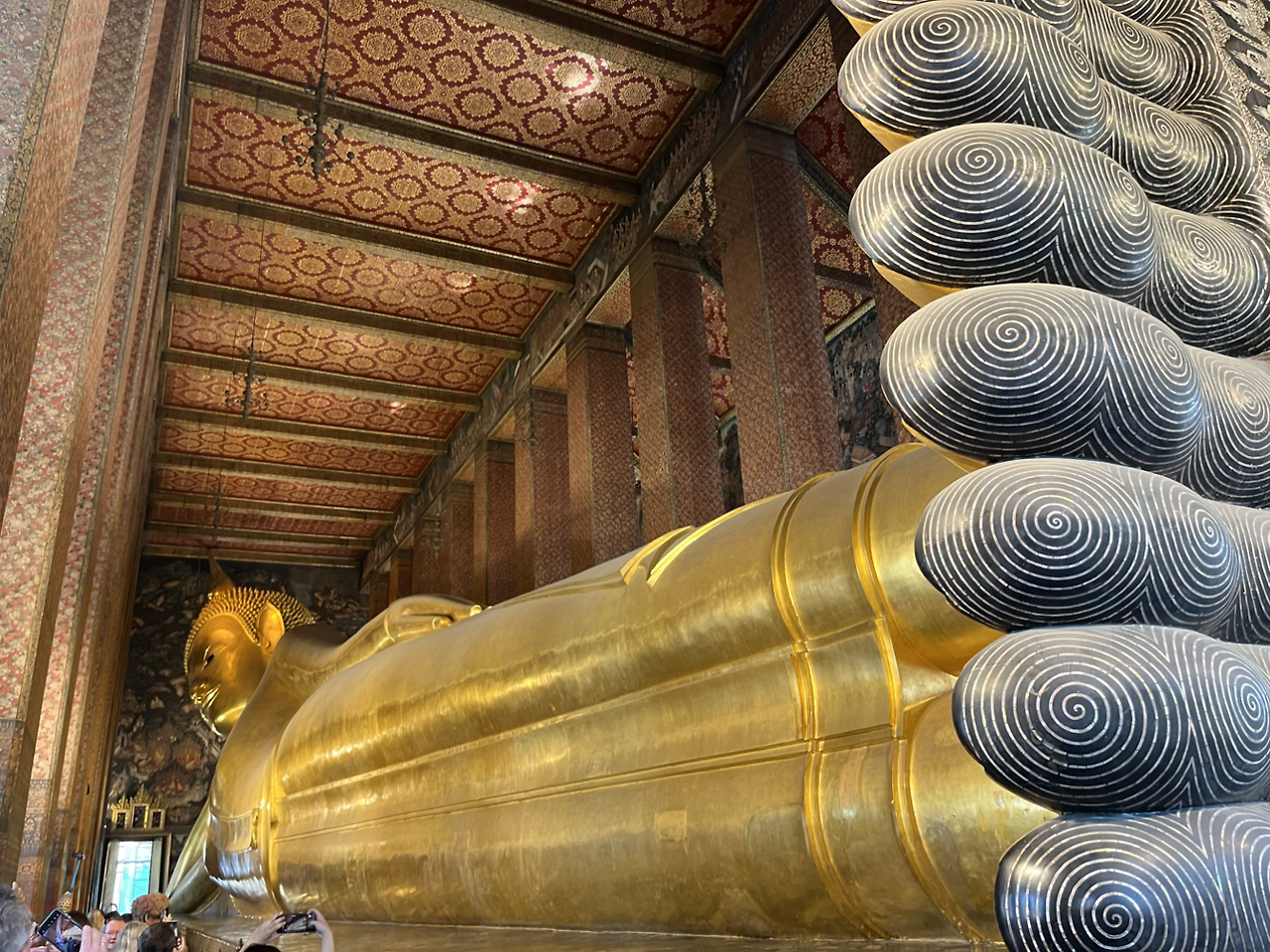 방콕 주요 관광지의 입장료가 이전보다 상당히 오른 것 같았다. 왓 아룬이 200바트, 왓 포가 300바트였으니. 왓 포의 경우 키 120cm 이하는 무료였는데 둘째 아이의 키를 보더니 -120cm가 약간 넘는다- 무료라고 한다. 덕분에 조금 싸게 입장할 수 있었다. 관광객도 무척 많아진 것 같았다. 왓 아룬도 그렇지만, 왓 포의 경우 거대 와불상을 보기 위한 사람들의 행렬이 끊이지 않았다. 세계적으로 코로나 이후 여행 봇물이 터진 건 싱가포르에서도 많이 느꼈는데 이곳 방콕도 만만치 않다. 치앙마이에 이어 태국의 수도에도 온나라에서 온 여행객들로 바글거린다.