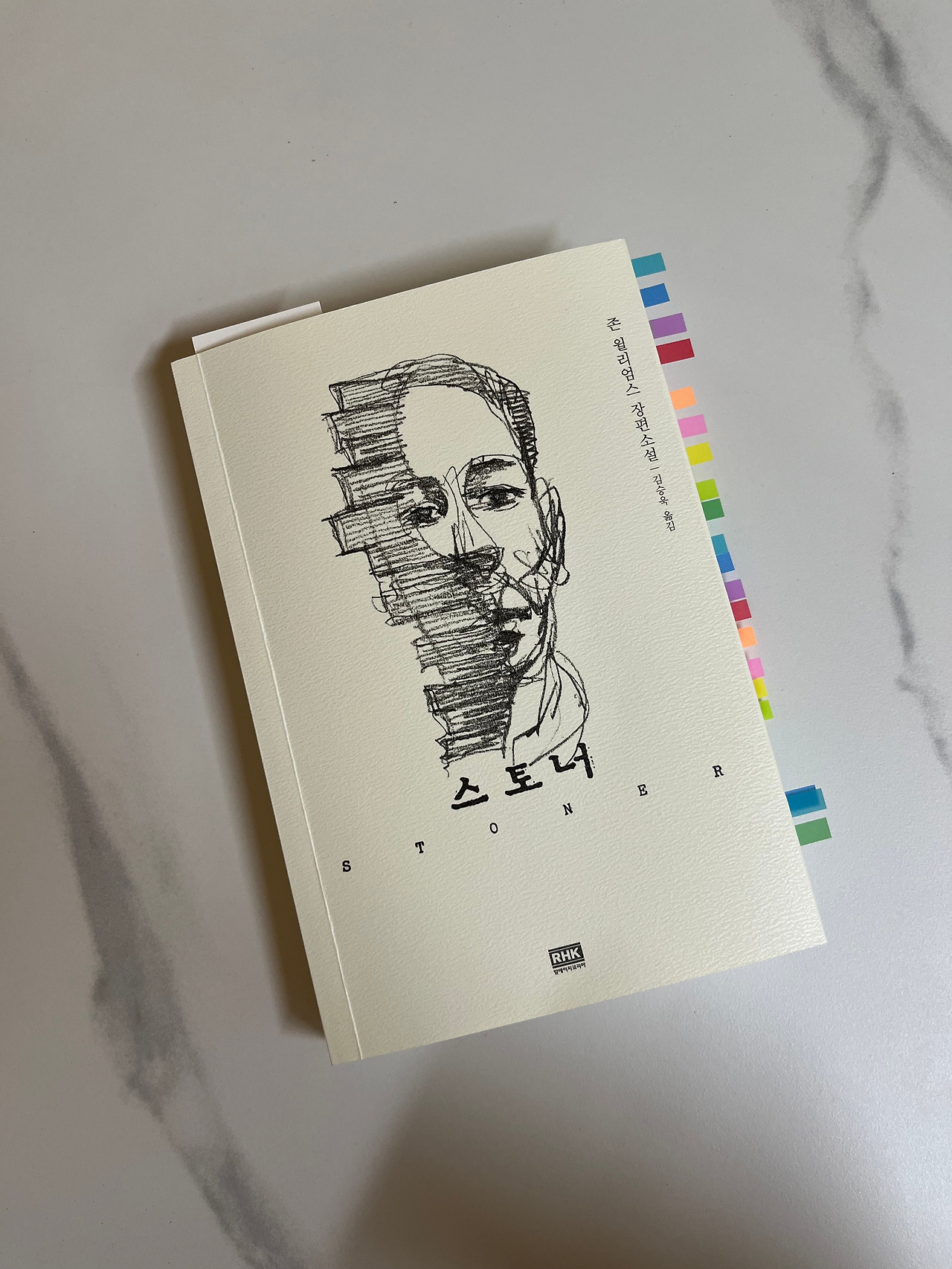 책을 덮고 표지를 바라본다. 이 책은 한국에서 두 가지 버전으로 판매되고 있다. 초판본은 노란 바탕에 스토너가 바라보던 연구실 창이 담겨 있다. 창문 너머에는 미주리 대학의 푸른 풍경과 은빛 기둥들이 그려져 있다. 다른 책은 무채색이다. 책과 한 몸이 된 듯한 스토너의 얼굴이 그려져 있다. 표지를 넘기면 귀퉁이에 작은 글씨로 여치가 디자인하고 방아깨비가 그렸다고 적혀 있다. 여치의 정체는 북디자이너 김여진 씨이고, 방아깨비는 그녀의 남편이다. 바다 건너 한국 땅으로 건너온 작품이 온전한 이해를 담은 그림을 품고서 독자들을 만나고 있다.