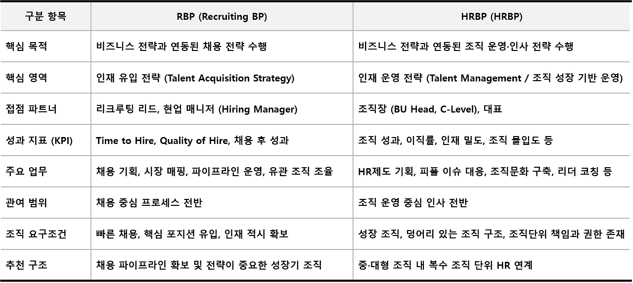나는 HRBP도 어려운 역할이지만, RBP는 그보다 훨씬 복합적이고 어렵다. 왜냐하면 RBP는 단순히 ‘사람을 뽑는 역할’을 넘어, 그 사람이 뽑힌 이후의 구조와 성과, 조직 운영까지 미리 상상하고 설계해야 하기 때문이다