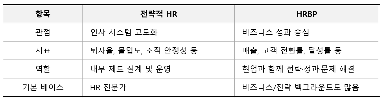 전략적 HR은 '좋은 HR'이 되는 것이고, HRBP는 ‘비즈니스를 책임지는 HR’이 되는 것이다.