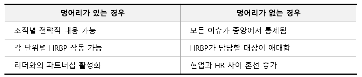 HRBP는 구조화된 조직 단위에 붙어서 작동한다. 기능적 독립성과 과업 단위가 명확한 조직이 있어야 한다.