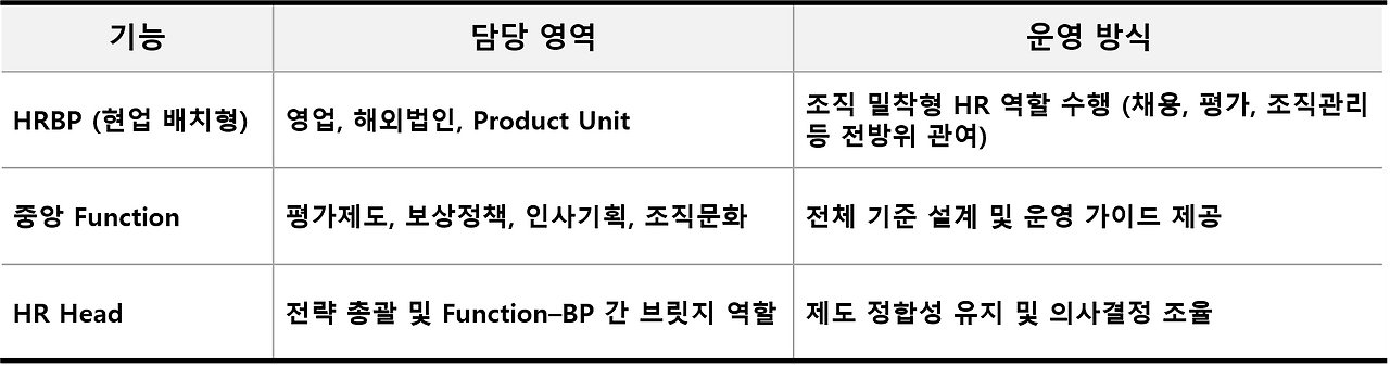 ✅ 중앙 Function 체제 + 일부 부문에 HRBP 배치