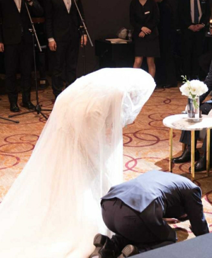 시어머님이 다른 분과 이야기를 나누시는 중, 나와 남편은 많은 하객 속에 파묻혀 멀뚱히 서있었다. 그런 우리에게 백발을 한 남자분이 먼저 다가왔다. 남편에게 잘 지냈냐며 인사를 하니 남편은 허리를 굽히며 인사를 했다. 나도 덩달아 "안녕하세요"라며 몸을 접으며 인사를 했다.