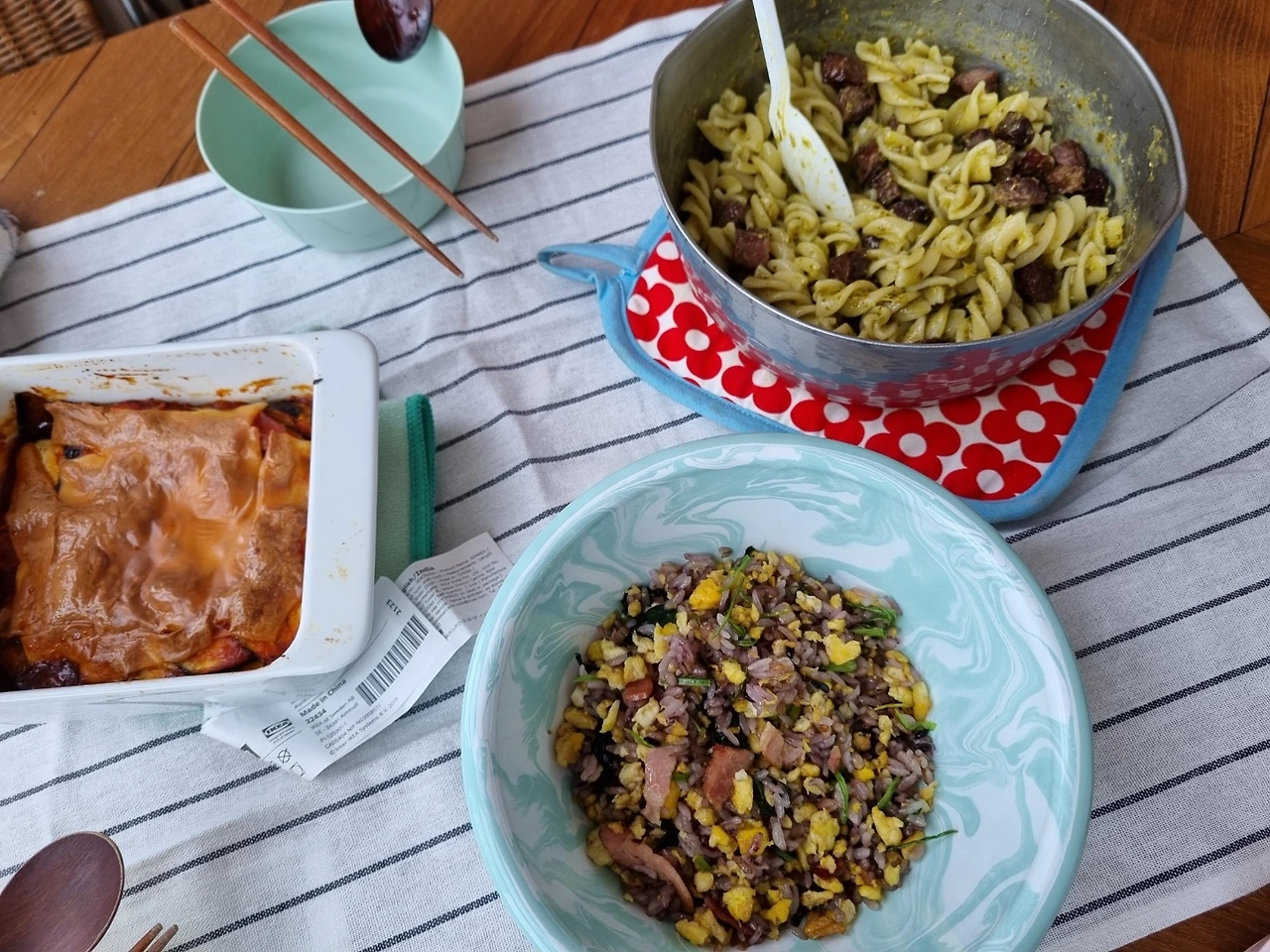 아이 밥을 만들 땐, 현미밥(고포드맵)을 사용하고 베이컨과 시금치는 더 잘게 썰어서 작은 입에도 한 입에 삼킬 수 있도록 만들었다. 사실, 아이는 잘 먹지 않았다. 아이에겐 밥 먹는 것보다 재밌고 신기한 게 훨씬 많았다. 아이는 나의 작은 방을 끝에서 끝까지 짧은 다리로 잘도 걸어 다녔고, 친구는 아이를 쫓아다니며 밥을 먹였다. 친구가 식탁에 앉았을 땐 밥은 이미 차게 식어 있었다. 그래도 친구는 아이에게 보란 듯이 맛있게 먹었다.