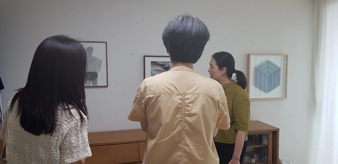 그림은 집으로 들어가는 입구부터 거실에 전시된다. 방문객이 차 한 잔 마시며 식탁에 앉아 볼 수 있게 주방 벽에도 걸린다. 심지어 안방도 하우스갤러리 오픈 시간에는 그림을 거는 장소로 변한다. 그렇다고 전시 기간 동안 살림살이를 가리거나 치우지 않는다. 집이라는 공간에 놓인 가구까지 활용하여 그림을 전시한다.